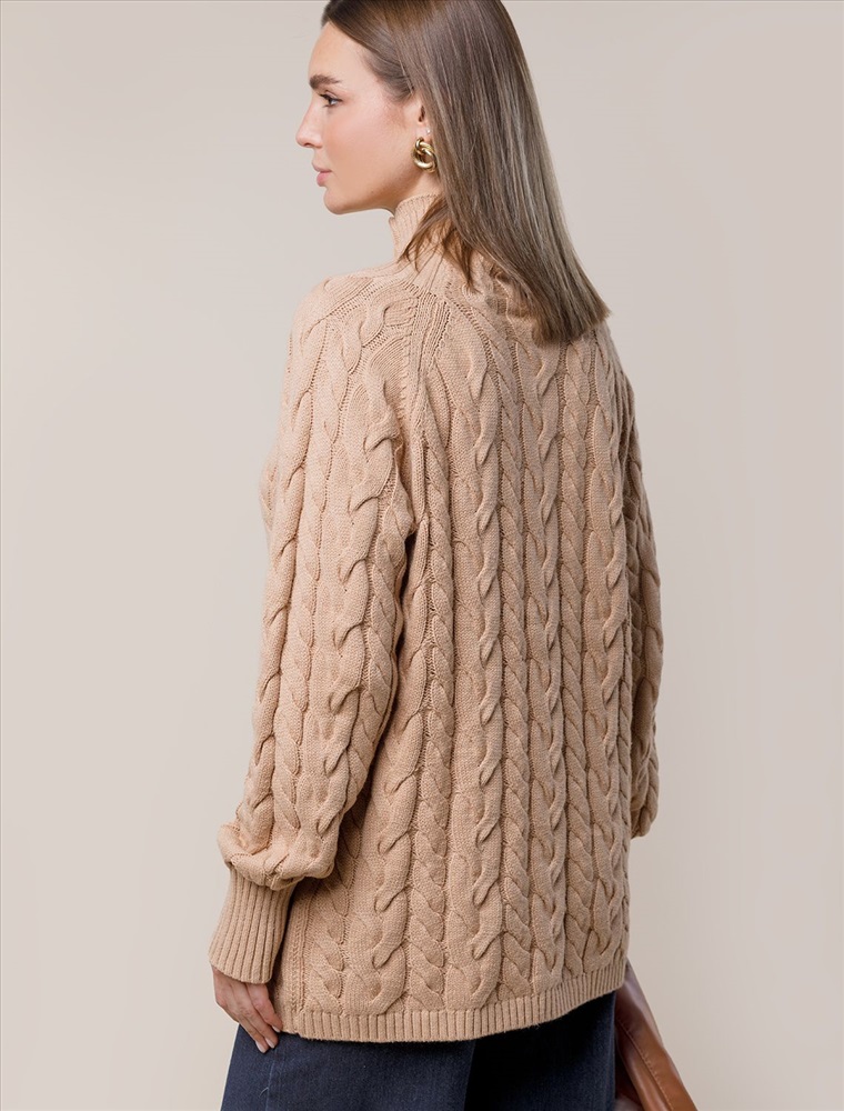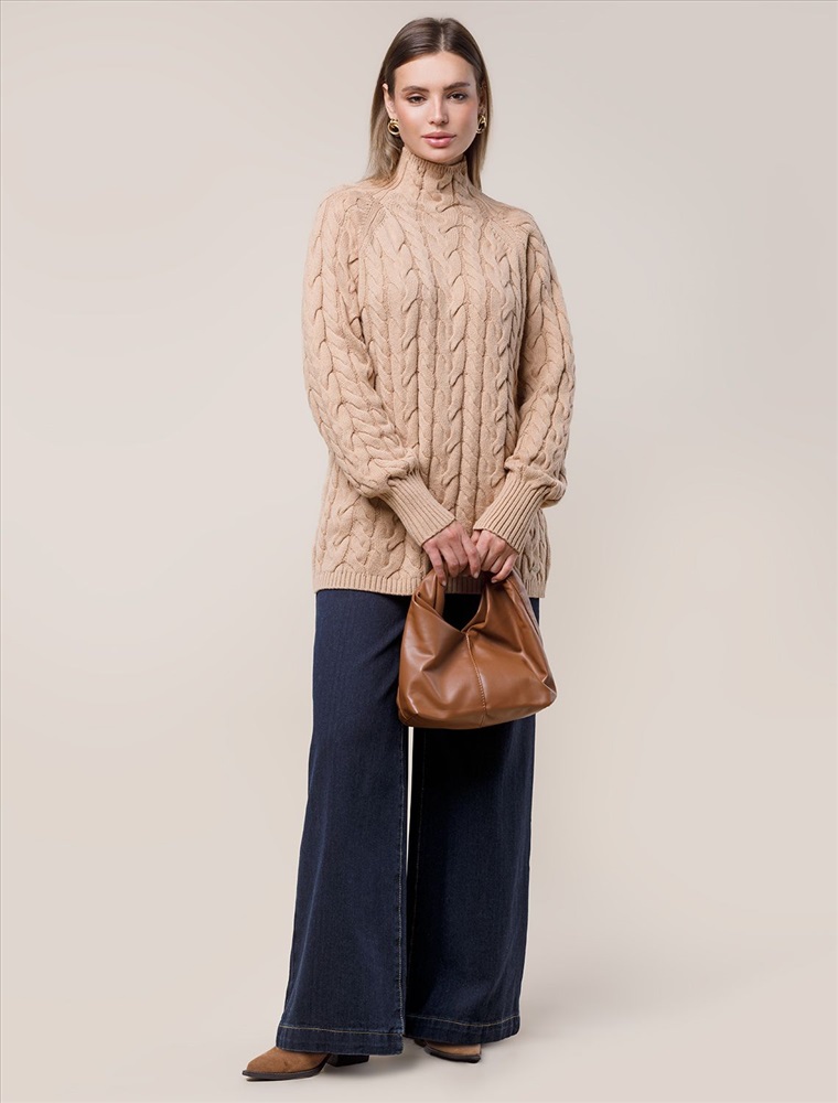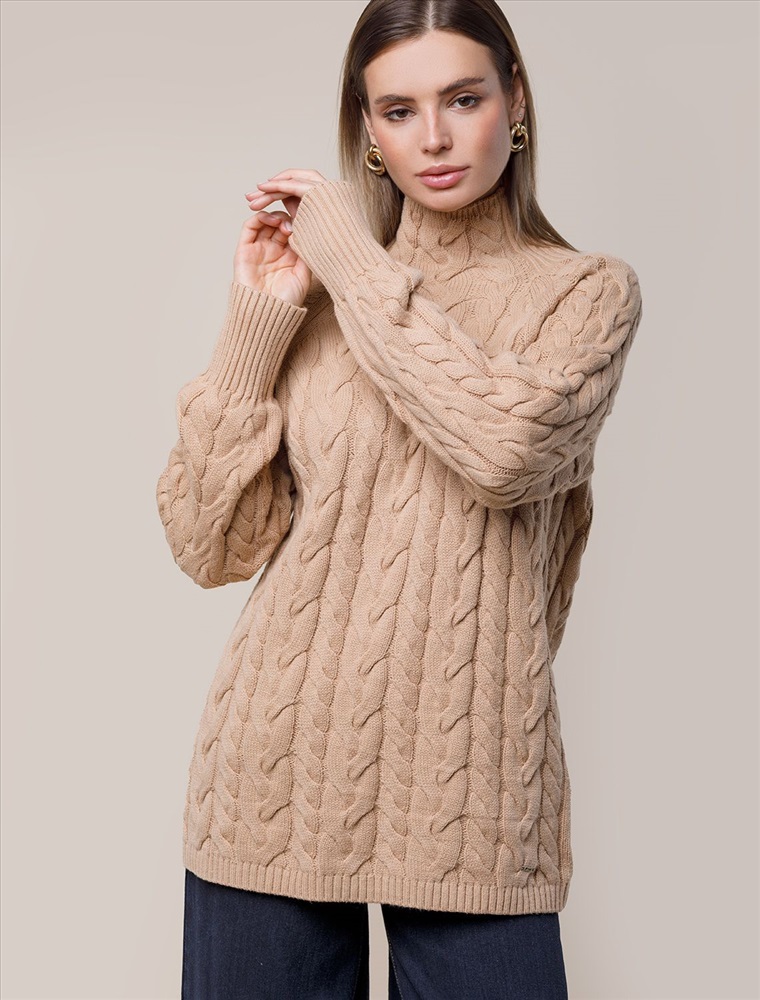 Параметры модели на первом фото: Рост 172, бюст 88, талия 64, бедра 88 Свитер выполнен из мягкой хлопковой пряжи фактурной вязки с добавлением акрила. Удлиненная модель силуэта over-size с воротом-стойка и узором косы во всю длину. Хорошо поддерживает тепло, при этом не перегревая тело. Сохраняет первоначальный внешний вид даже после множества стирок. Свободный силуэт позволяет носить изделие на футболку или рубашку с любым низом. Из украшений металлический логотип бренда. Комментарии к товару
