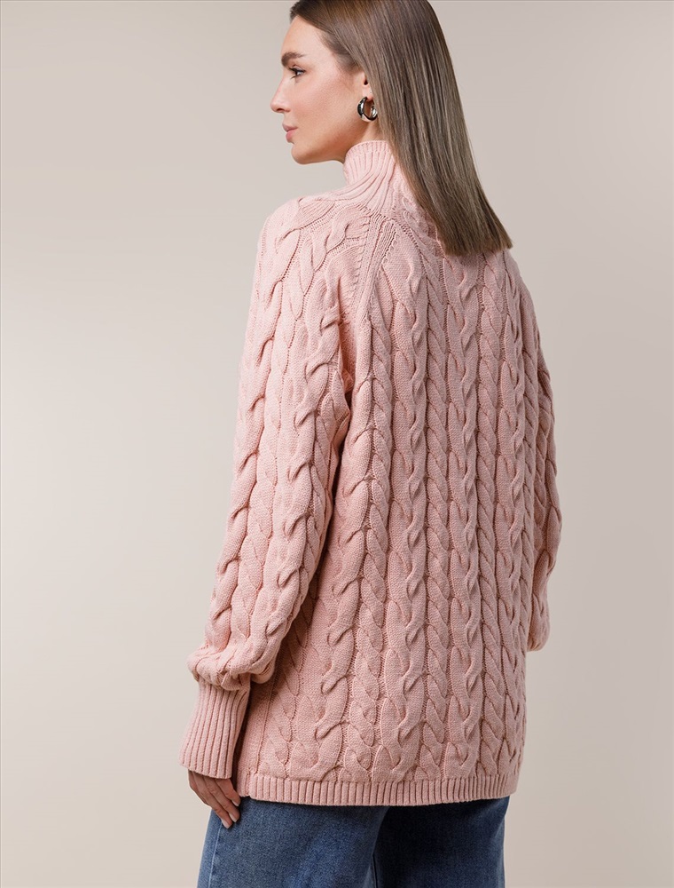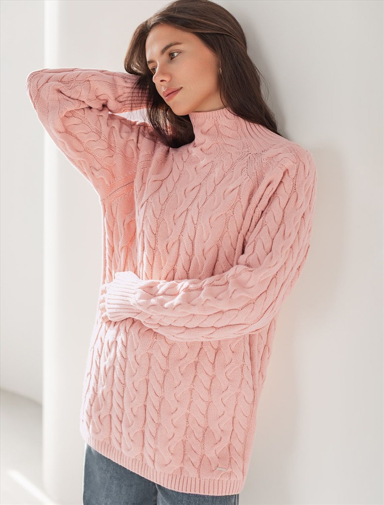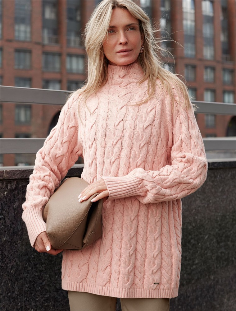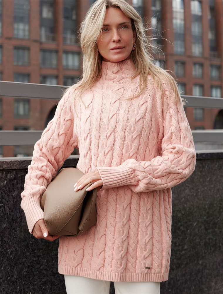 Параметры модели на первом фото: Рост 170, бюст 83, талия 64, бедра 88 Свитер выполнен из мягкой хлопковой пряжи фактурной вязки с добавлением акрила. Удлиненная модель силуэта over-size с воротом-стойка и узором косы во всю длину. Хорошо поддерживает тепло, при этом не перегревая тело. Сохраняет первоначальный внешний вид даже после множества стирок. Свободный силуэт позволяет носить изделие на футболку или рубашку с любым низом. Из украшений металлический логотип бренда. Комментарии к товару
