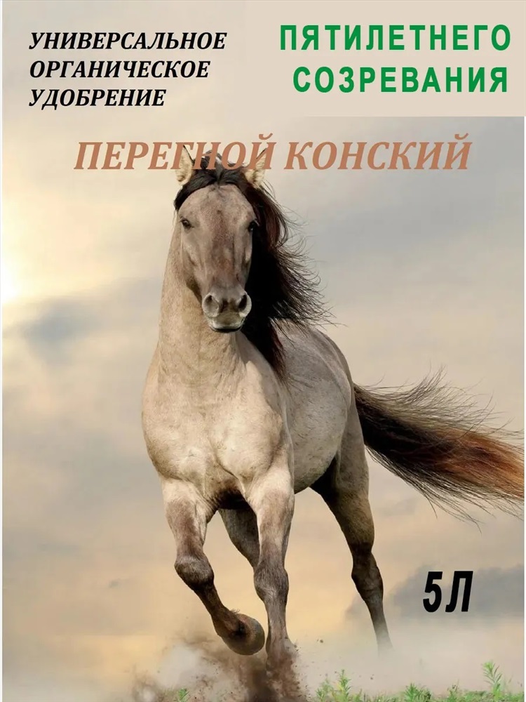 Наш товар - это конский навоз пятитилетнего созревания. Не имеет запаха, каких либо включений и растительных остатков. Очень рассыпчатый. Универсальное органическое удобрение Перегной конский рекомендуется при приготовлении почвенной смеси для выращивания рассады всех видов садово-огородных культур. В земле, в которую подмешивают конский перегной, не только ускоряется рост рассады, но и улучшается вкус овощей. К примеру, у лука и огурцов исчезнет горечь. Фасовка 5л Комментарии к товару