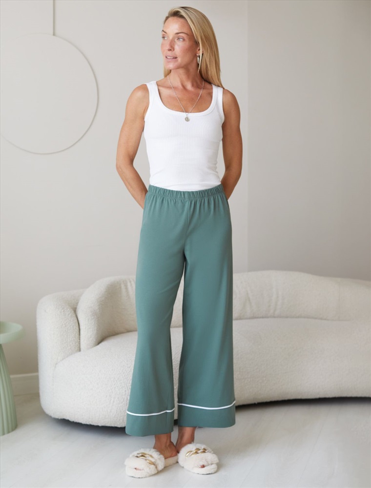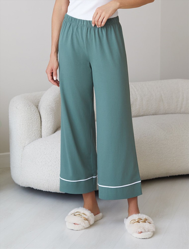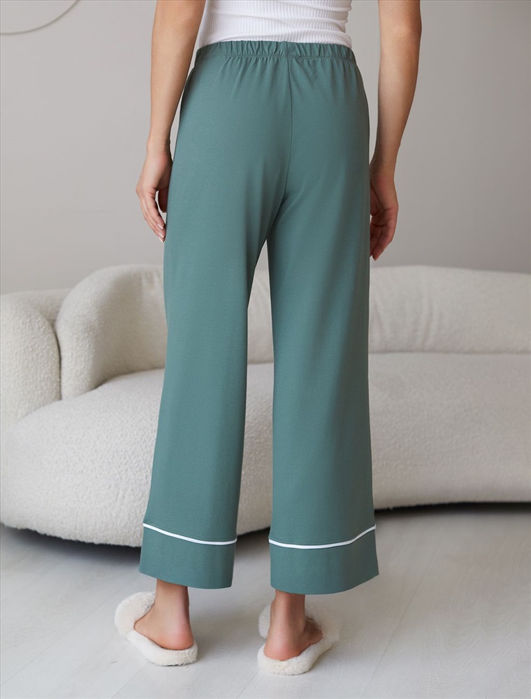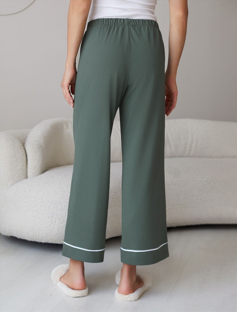 Контрастный кант по низу добавляет стильный акцент и возможность сочетать с белыми футболками нашего бренда. Эти брючки идеально подойдут тем, кто ищет стильное решение с учетом комфорта и удобства, в них вы будете женственны и утонченны даже в домашней обстановке.