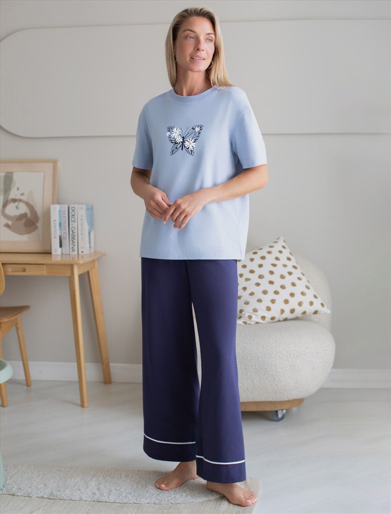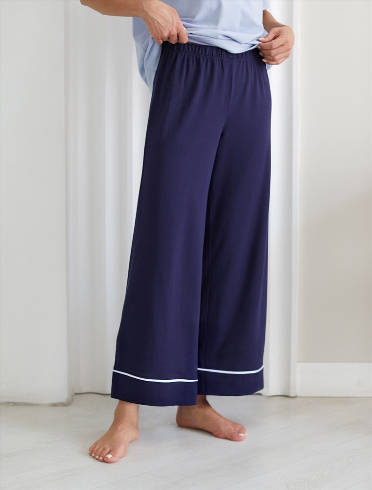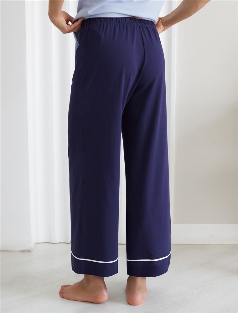 Плотность: 170 Г/м2 Размер товара на первом фото: 42 Укороченные брюки темно-синего цвета из мягкого эластичного хлопка подарят вам комфорт в любое время дня. Прямой крой обеспечивает свободу движений и удобство при носке. Материал приятен на ощупь, хорошо пропускает воздух и позволяет коже дышать, делая эти брюки идеальным выбором для повседневной носки. Широкие брюки прекрасно подойдут на женщин с фигурой плюс сайз, на высокий рост и на девушек низкого роста, создут гармоничный образ без стеснения движений. Представлены большие размеры. Контрастный кант по низу добавляет стильный акцент и возможность сочетать с белыми футболками нашего бренда. Эти брючки идеально подойдут тем, кто ищет стильное решение с учетом комфорта и удобства, в них вы будете женственны и утонченны даже в домашней обстановке. Комментарии к товару