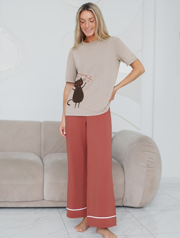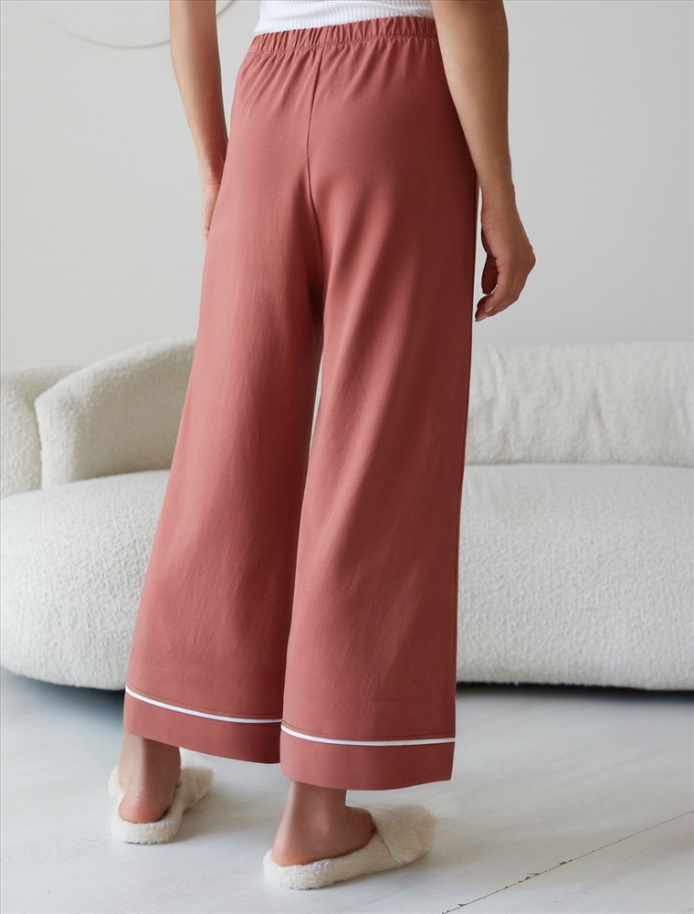 Плотность: 170 Г/м2 Размер товара на первом фото: 42 Укороченные брюки актуального кирпичного цвета из мягкого эластичного хлопка подарят вам комфорт в любое время дня. Прямой крой обеспечивает свободу движений и удобство при носке. Материал приятен на ощупь, хорошо пропускает воздух и позволяет коже дышать, делая эти брюки идеальным выбором для повседневной носки. Широкие брюки прекрасно подойдут на женщин с фигурой плюс сайз, на высокий рост и на девушек низкого роста, создут гармоничный образ без стеснения движений. Представлены большие размеры. Контрастный кант по низу добавляет стильный акцент и возможность сочетать с белыми футболками нашего бренда. Эти брючки идеально подойдут тем, кто ищет стильное решение с учетом комфорта и удобства, в них вы будете женственны и утонченны даже в домашней обстановке. Комментарии к товару