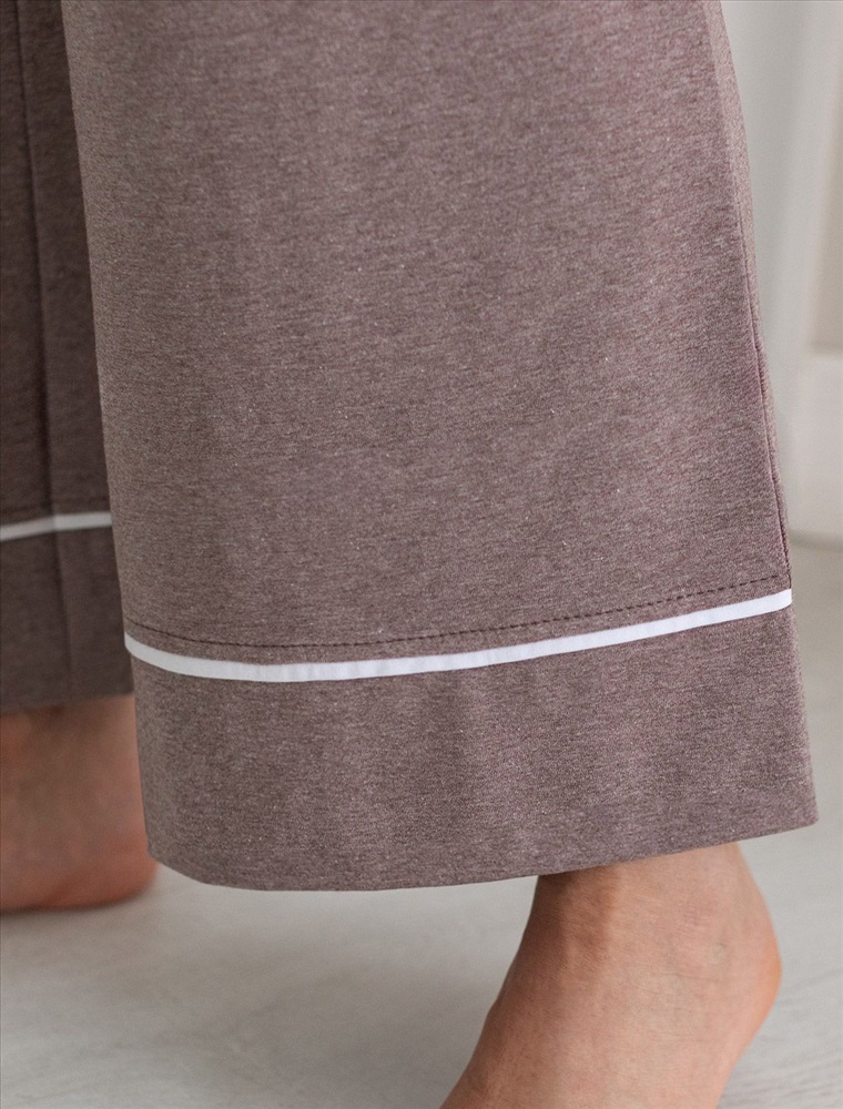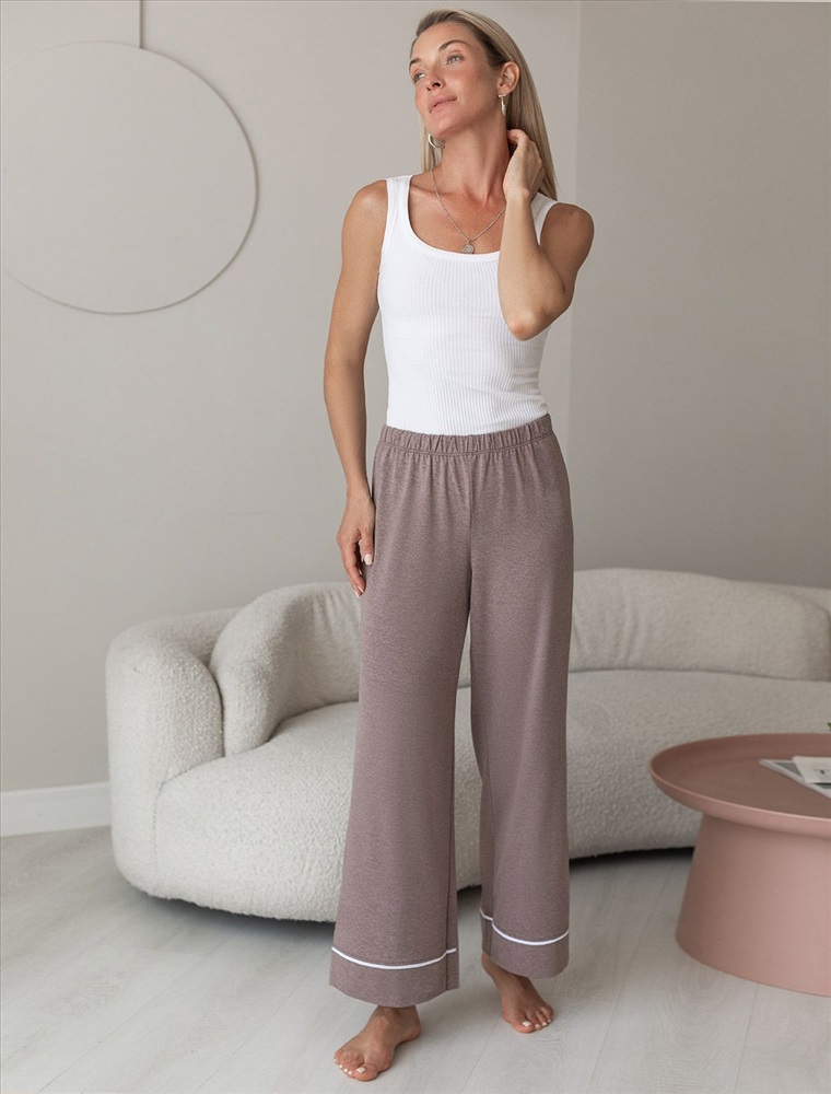 Плотность: 170 Г/м2 Размер товара на первом фото: 42 Укороченные брюки актуального темно-кофейного цвета из мягкого эластичного хлопка подарят вам комфорт в любое время дня. Прямой крой обеспечивает свободу движений и удобство при носке. Материал приятен на ощупь, хорошо пропускает воздух и позволяет коже дышать, делая эти брюки идеальным выбором для повседневной носки. Широкие брюки прекрасно подойдут на женщин с фигурой плюс сайз, на высокий рост и на девушек низкого роста, создут гармоничный образ без стеснения движений. Представлены большие размеры. Контрастный кант по низу добавляет стильный акцент и возможность сочетать с белыми футболками нашего бренда. Эти брючки идеально подойдут тем, кто ищет стильное решение с учетом комфорта и удобства, в них вы будете женственны и утонченны даже в домашней обстановке. Комментарии к товару