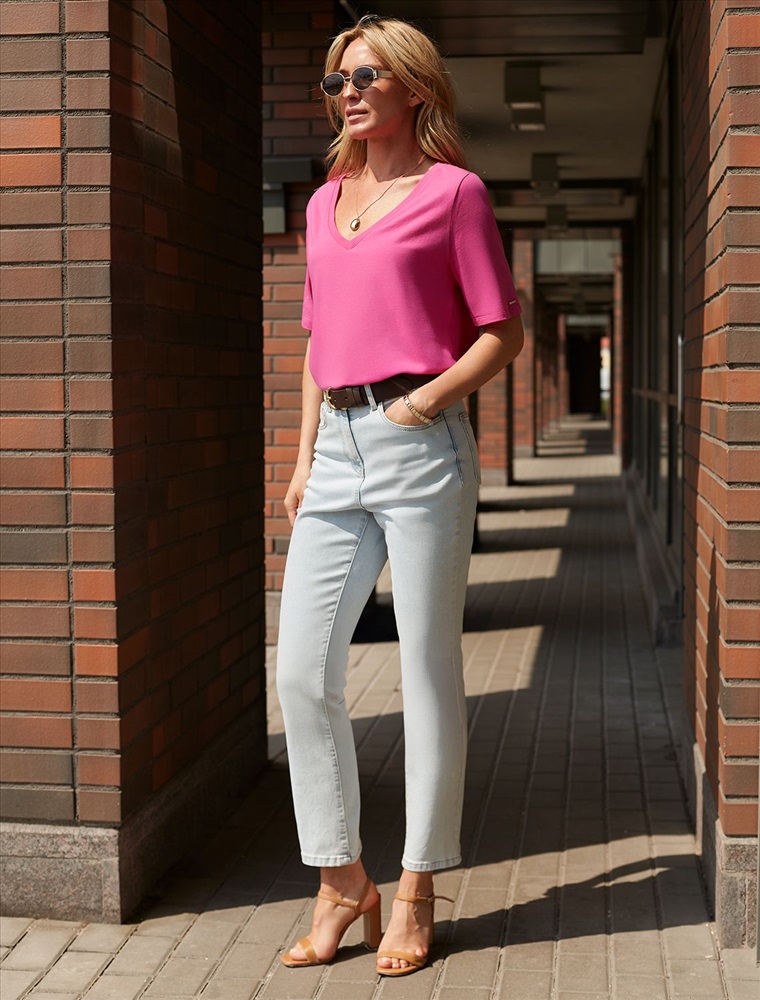 Плотность: 11.5 OZ Параметры модели на первом фото: Рост 172, бюст 88, талия 64, бедра 88 Размер товара на первом фото: 44 Джинсы выполнены из эластичного денима. Укороченная, плотно прилегающая модель гармонично дополнит любой образ с рубашкой и жакетом, футболкой и лонгсливом. Изделие очень хорошо тянется и не ограничивает движения. На поясе брендированный патч. Комментарии к товару