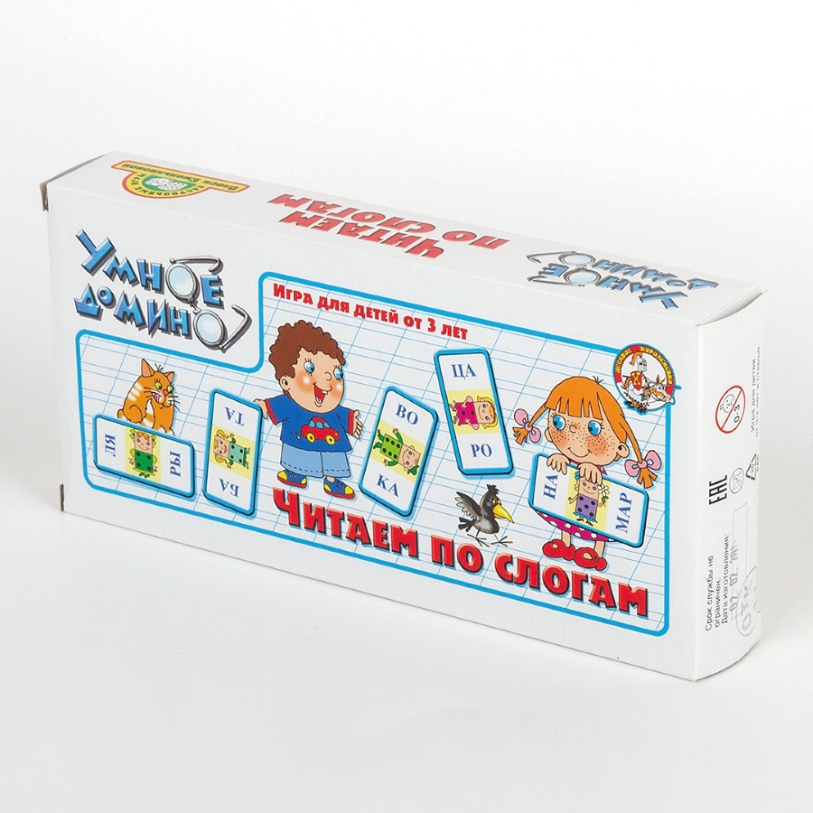 Детское домино «Читаем по слогам» входит в серию обучающих и развивающих игр «Умное домино». Подробнее обо всей серии обучающих игр «Умное домино».