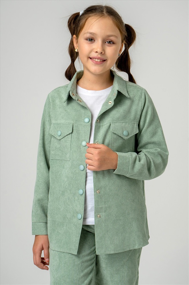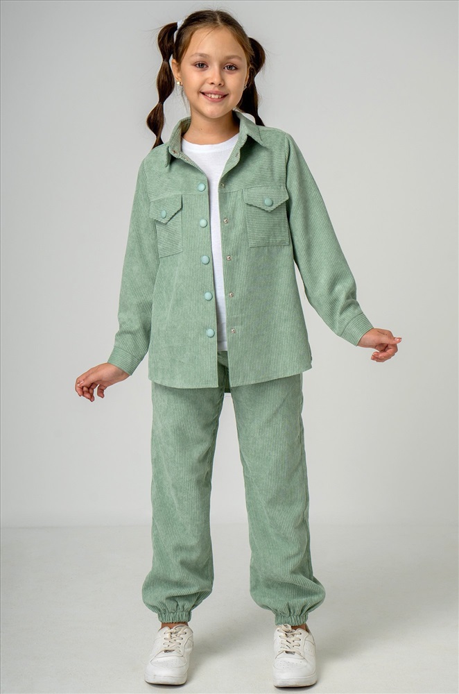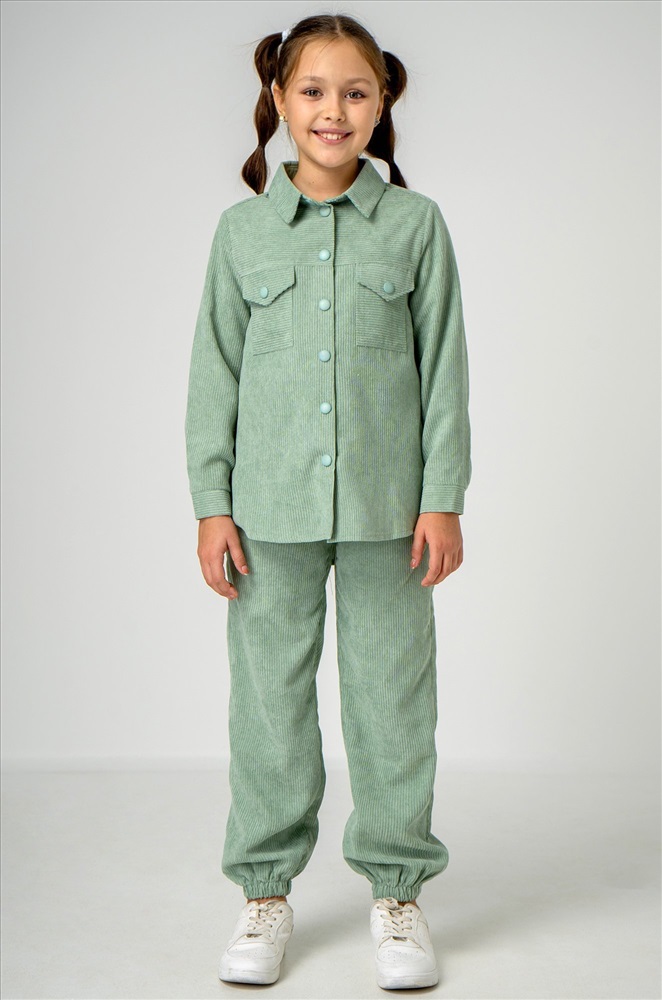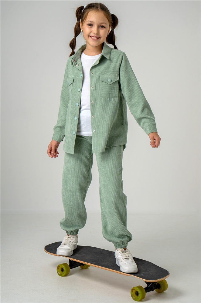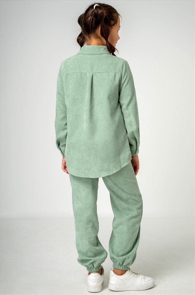 Вельветовый детский костюм с брюками — настоящий хит для девочек, которые любят стиль и комфорт! В наборе рубашка с отложным воротником и штаны с карманами.