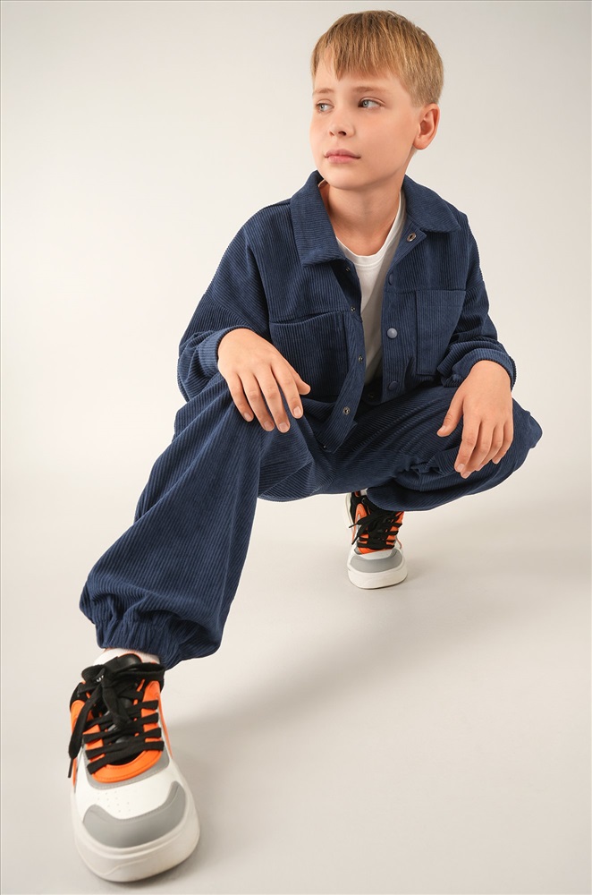 Готов к стильным победам? Вельветовый костюм для мальчика в синем цвете создан, чтобы каждый день был удобным и ярким. Свободный крой и универсальный однотонный дизайн — идеальный выбор для школы, прогулок и активного отдыха.