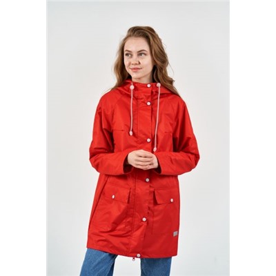 Ветровка женская в повседневном стиле: - ткань с мембранным покрытием - свободный крой - модель средней длины - утяжка по капюшону на шнурке - капюшон с трикотажным подкладом - ветрозащитная планка на кнопках - накладные карманы с клапаном на кнопке