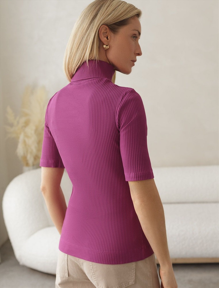 Плотность: 230 Г/м2 Водолазка с коротким рукавом выполнена из фактурного трикотажа в рубчик. Модель идеально сидит по фигуре не сковывая движения. Хлопковый трикотаж поддерживает оптимальную температуру тела, поэтому в изделии будет комфортно в течении всего дня. Наличие эластана в составе гарантирует формоустойчивости. Водолазка отлично впишется в деловой дресс-код и подойдет для повседневного аутфита.