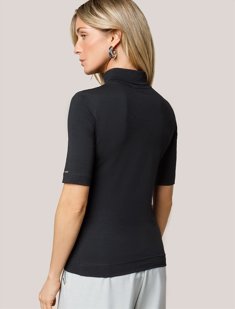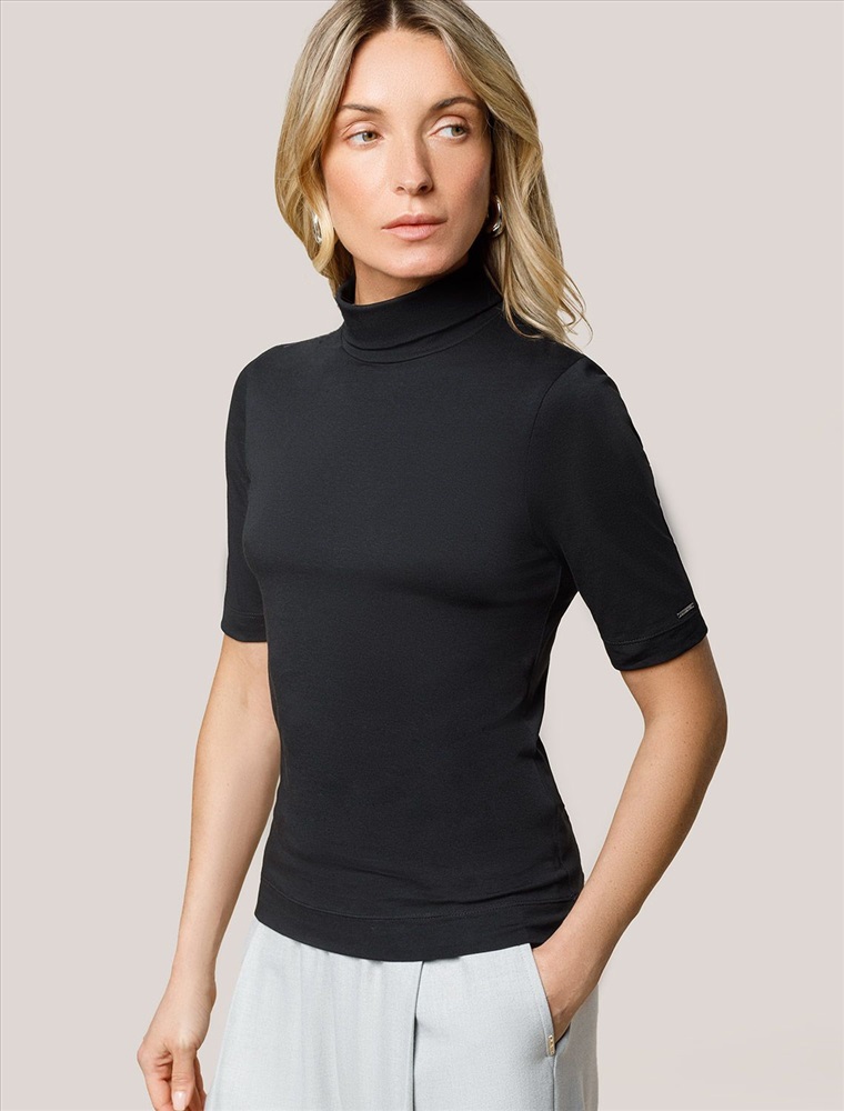 Плотность: 170 Г/м2 Параметры модели на первом фото: Рост 172, бюст 88, талия 64, бедра 88 Водолазка с коротким рукавом выполнена из премиального хлопка с добавлением эластана. Гладкий трикотаж обеспечит гарантированный комфорт и удобство в использовании. Внизу изделия металлическая нашивка с логотипом бренда. Совет стилиста: водолазка может заменить рубашку в нестрогом офисном образе или подружиться с джинсами-трубами, жилетом и кедами в расслабленном повседневном наряде. Комментарии к товару