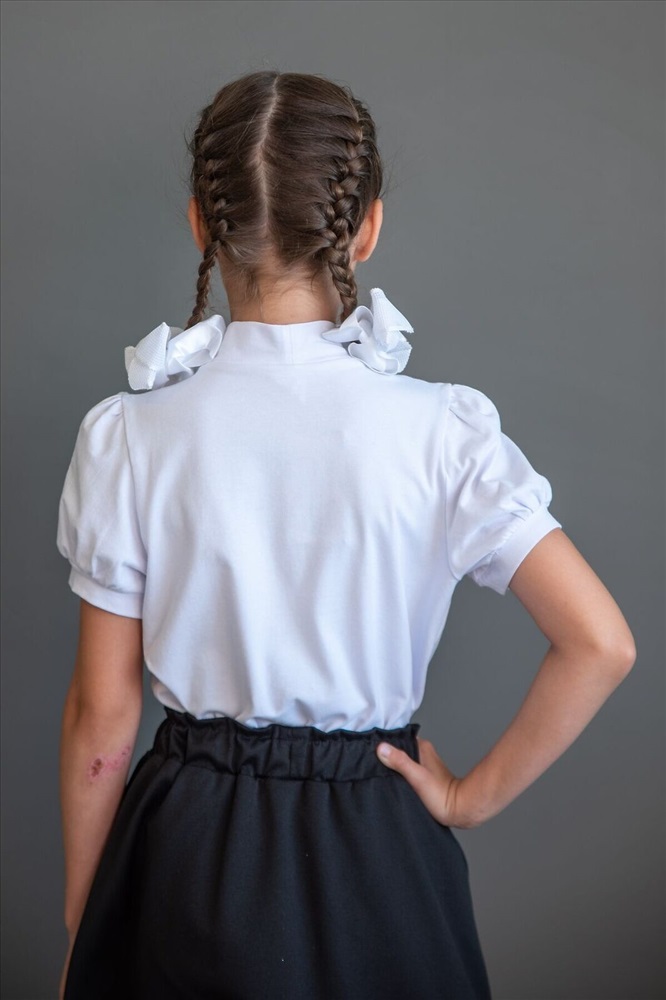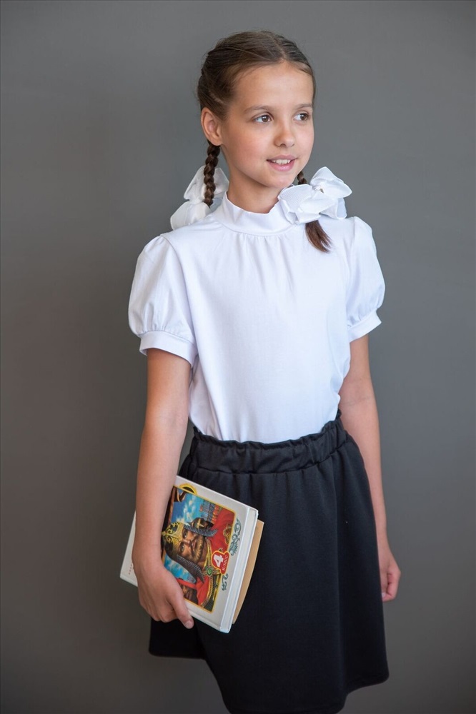 ID товара: 1028122 Состав: 92% хлопок 8% эластан* Сезон: Демисезон Основная ткань: Кулирная гладь-пенье Плотность: 180 Страна бренда: Россия Страна производства: Россия Свитер (водолазка) для девочки прямого кроя, с втачным коротким рукавом. Горловина круглая, обработана воротником-стойкой из основного полотна. Рукав по типу "фонарик" со сборкой по окату и низу рукава. По низу рукава манжета из основного полотна. На полочке сборка по горловине. Низ изделия обработан швом в подгибку. Комментарии к товару