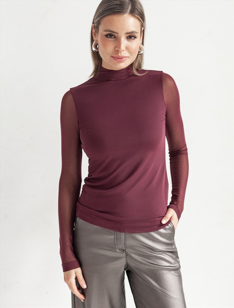 Плотность: 90 Г/м2 Элегантная модель из мягкой вискозы с эффектными деталями! Основная часть водолазки бордового цвета выполнена из плотного вискозного трикотажа, обеспечивающего комфорт, в то время как рукава из тонкой сетки создают стильный контраст. Двойной воротник с отворотом добавляет образу многослойность и универсальность. Модель отличается безупречной посадкой по фигуре! Комментарии к товару