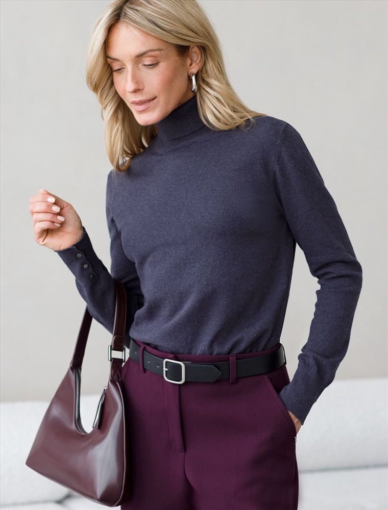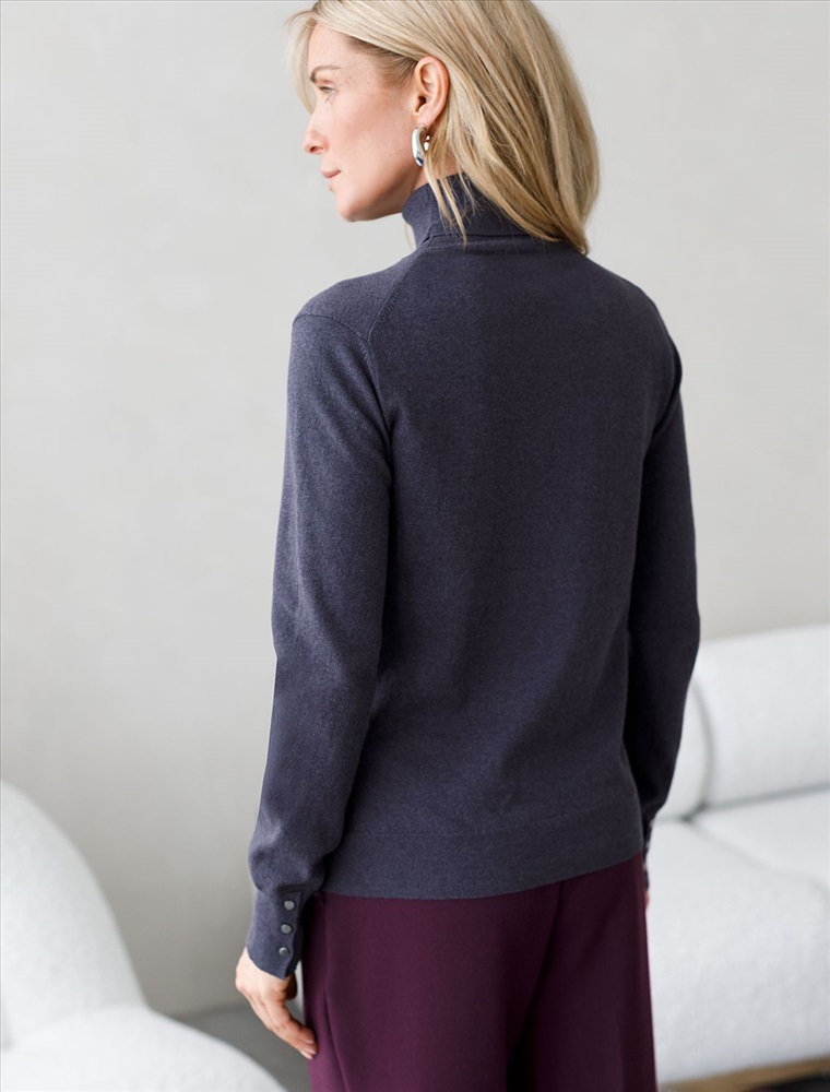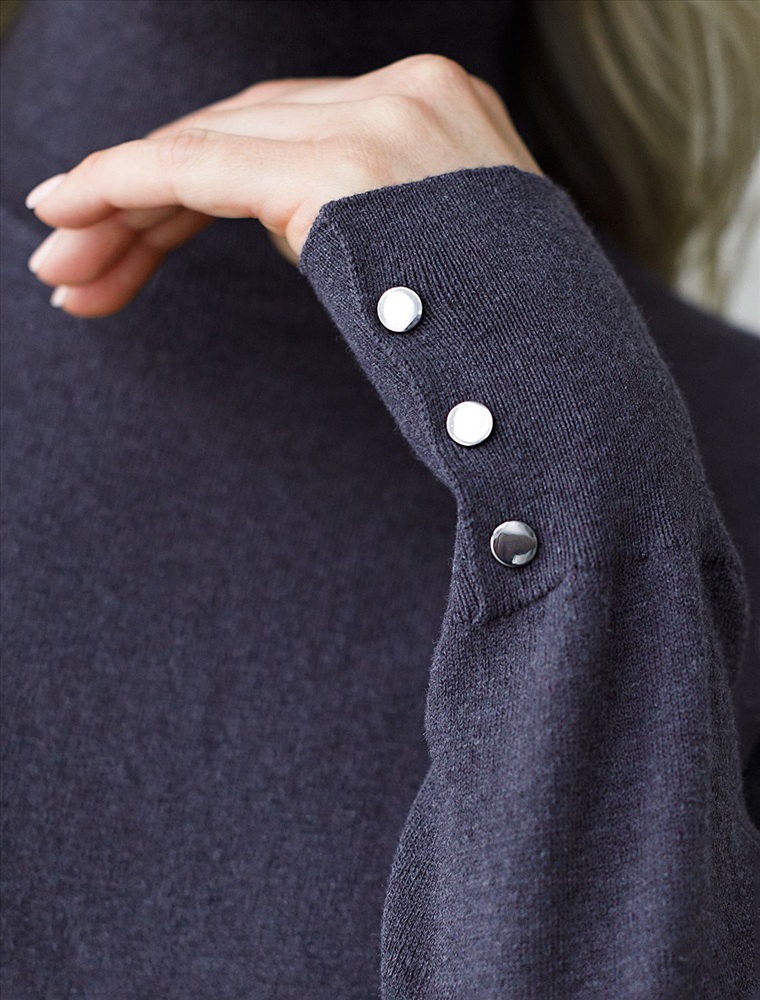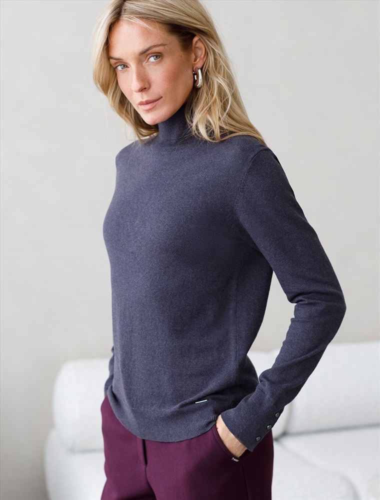 Размер товара на первом фото: 42 Водолазка тонкой вязки выполнена из хлопка. Лаконичная модель дополнена манжетами с золотистыми пуговицами. Изделие не сковывает движений и подходит для любой фигуры. Мягкая пряжа очень приятная к телу не колется и сохраняет тепло при этом не перегревая.