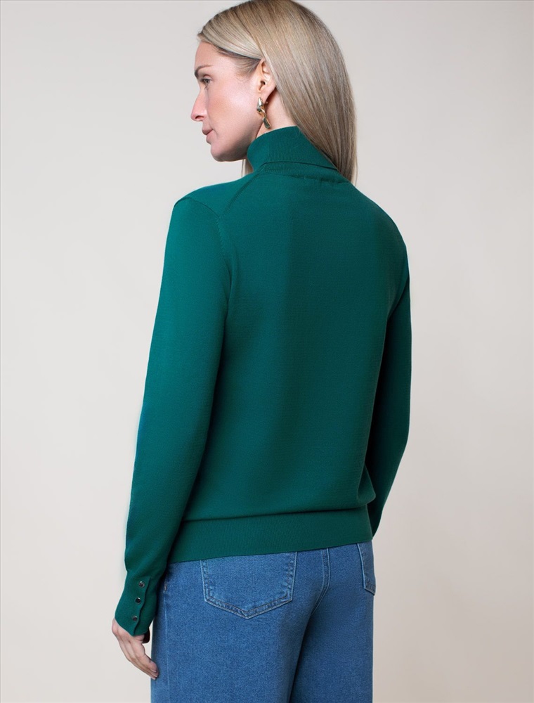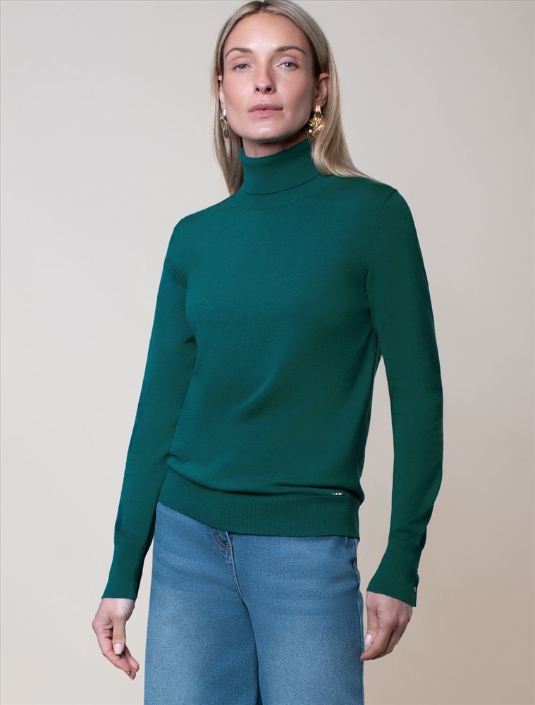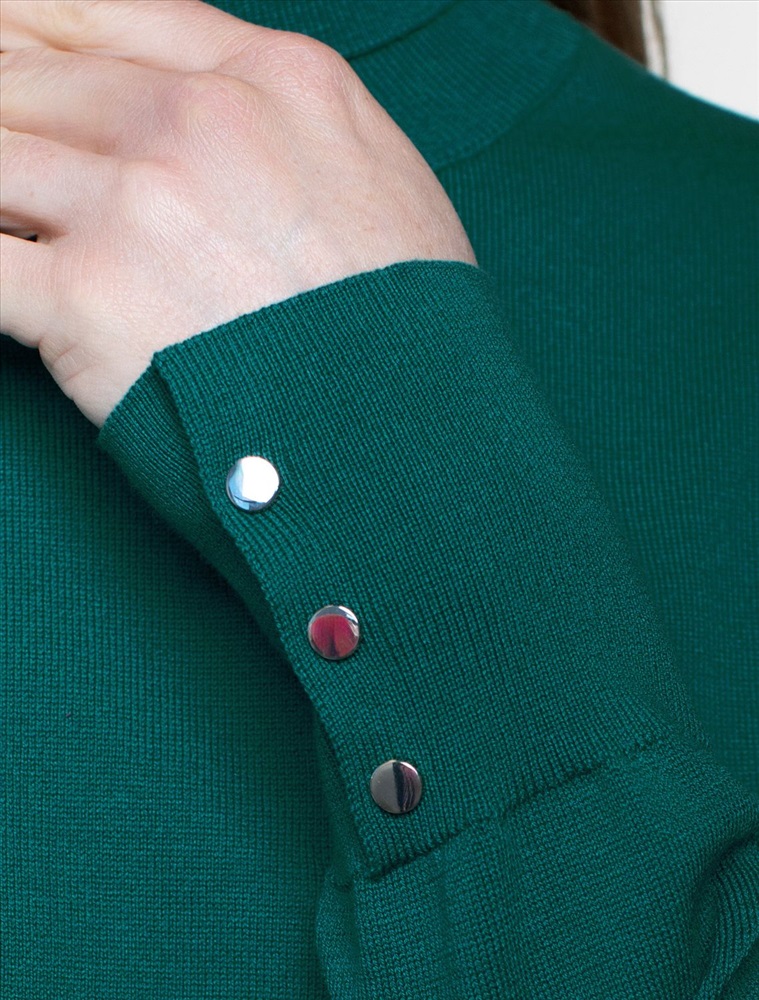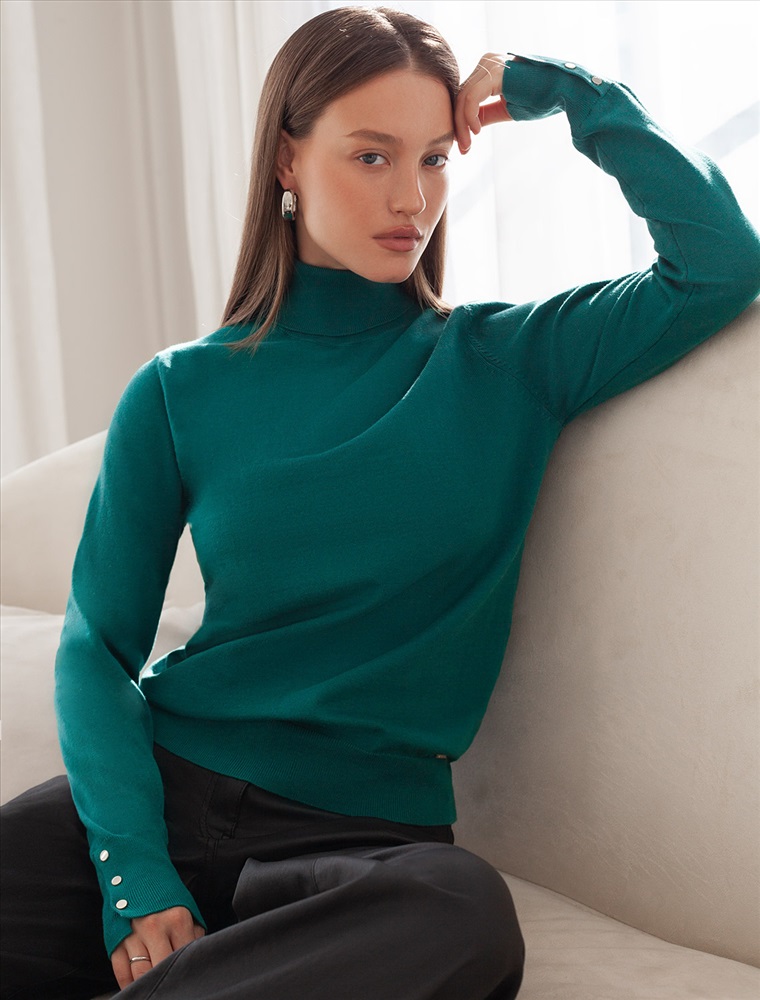 Размер товара на первом фото: 42 Водолазка тонкой вязки выполнена из хлопка. Лаконичная модель дополнена манжетами с золотистыми пуговицами. Изделие не сковывает движений и подходит для любой фигуры. Мягкая пряжа очень приятная к телу не колется и сохраняет тепло при этом не перегревая.