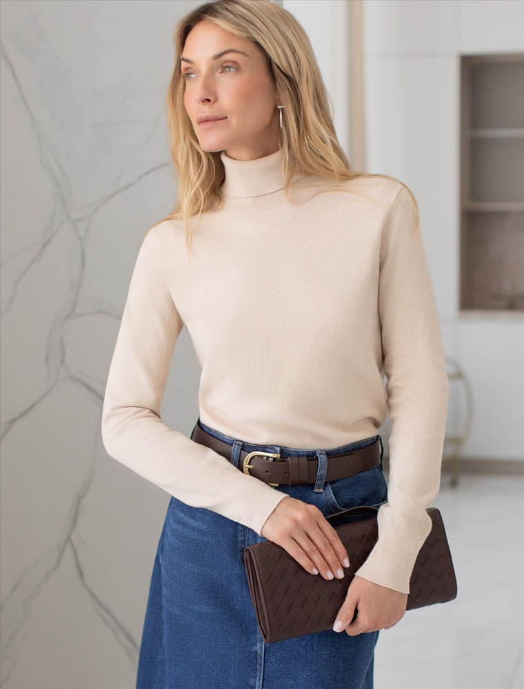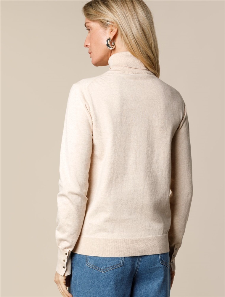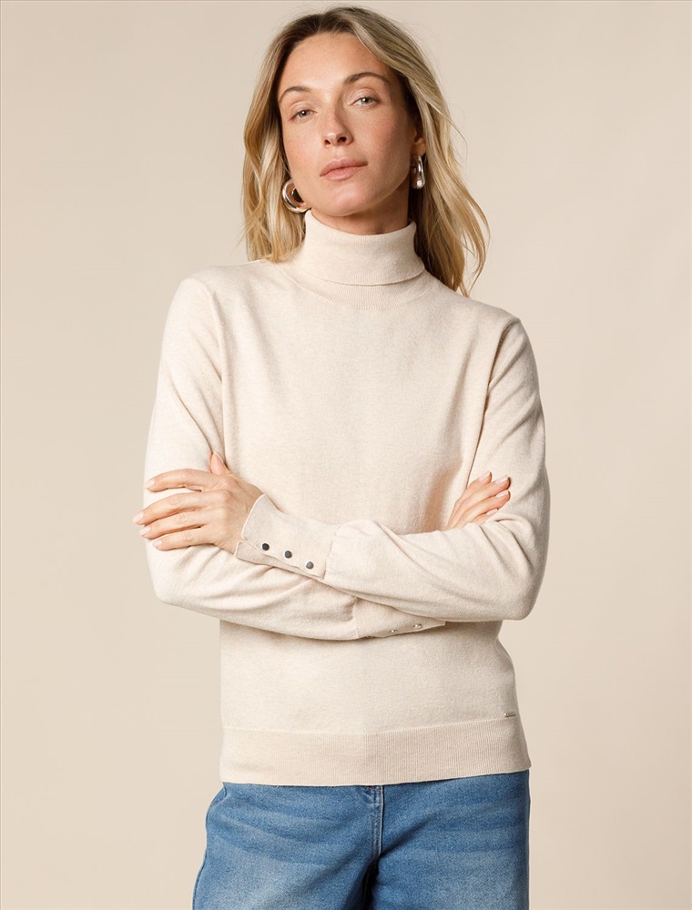 Размер товара на первом фото: 42 Водолазка тонкой вязки выполнена из хлопка. Лаконичная модель дополнена манжетами с золотистыми пуговицами. Изделие не сковывает движений и подходит для любой фигуры. Мягкая пряжа очень приятная к телу не колется и сохраняет тепло при этом не перегревая.