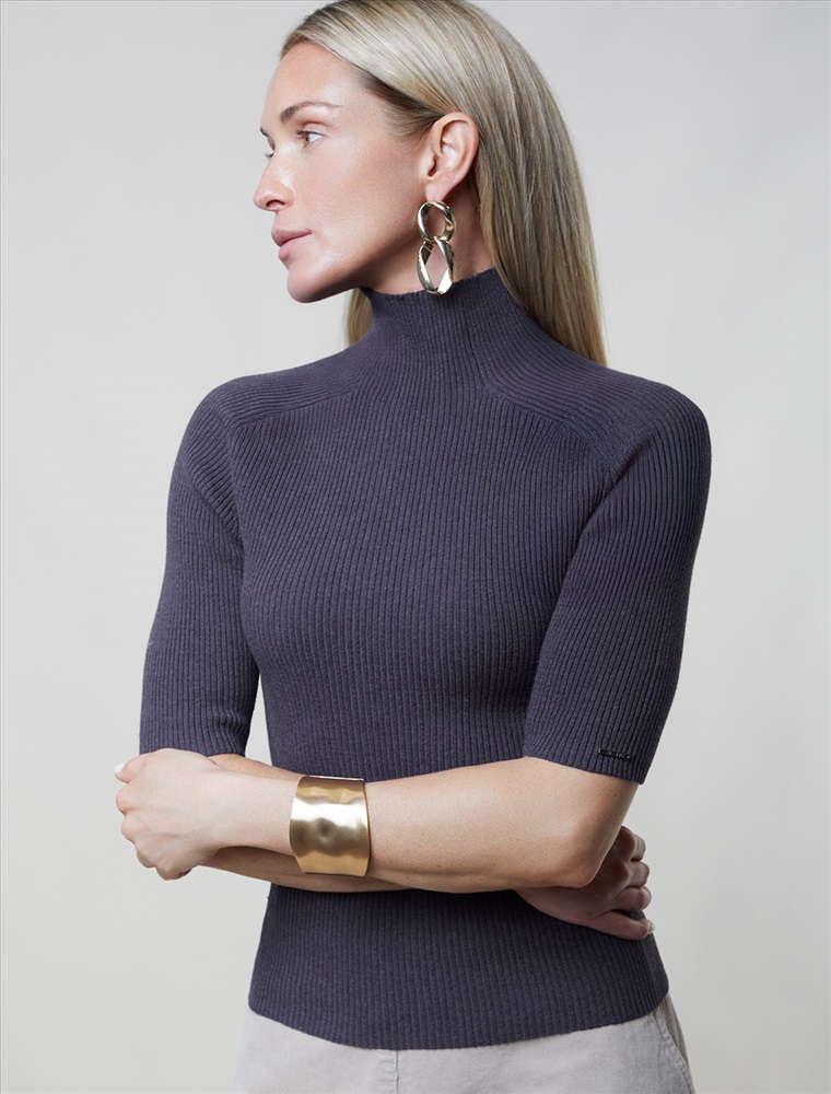 Плотность: 12 GG Параметры модели на первом фото: Рост 172, бюст 88, талия 64, бедра 88 Размер товара на первом фото: 42 Водолазка тонкой вязки в рубчик выполнена из хлопка. Лаконичная модель с коротким рукавом дополнена металлическим логотипом бренда. Изделие идеально сидит по фигуре и не сковывает движений. Мягкая пряжа очень приятная к телу не колется и сохраняет тепло при этом не перегревая. Комментарии к товару