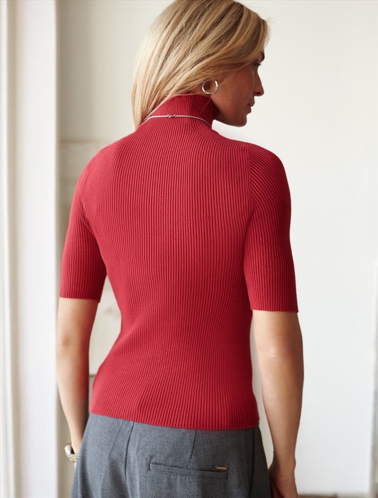 Размер товара на первом фото: 42 Водолазка тонкой вязки в рубчик выполнена из хлопка. Лаконичная модель с коротким рукавом дополнена металлическим логотипом бренда. Изделие идеально сидит по фигуре и не сковывает движений. Мягкая пряжа очень приятная к телу не колется и сохраняет тепло при этом не перегревая.