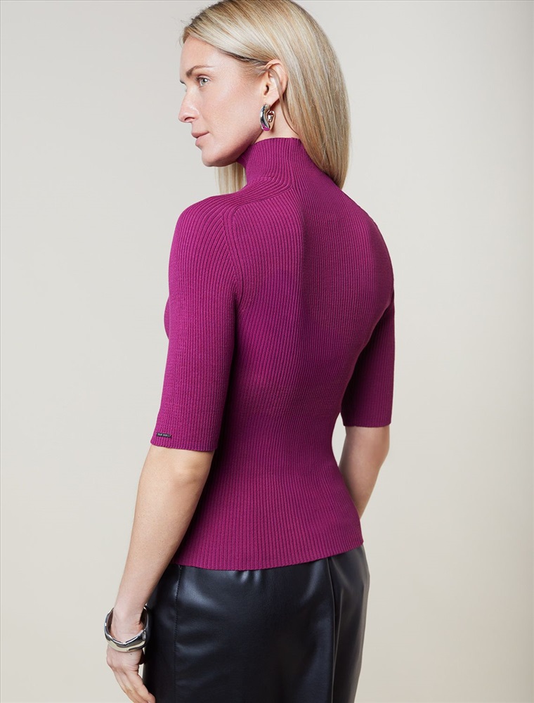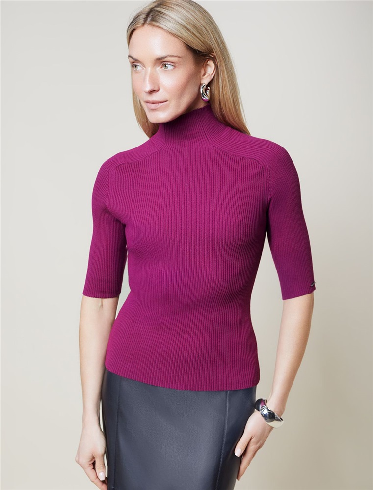 Размер товара на первом фото: 42 Водолазка тонкой вязки в рубчик выполнена из хлопка. Лаконичная модель с коротким рукавом дополнена металлическим логотипом бренда. Изделие идеально сидит по фигуре и не сковывает движений. Мягкая пряжа очень приятная к телу не колется и сохраняет тепло при этом не перегревая.