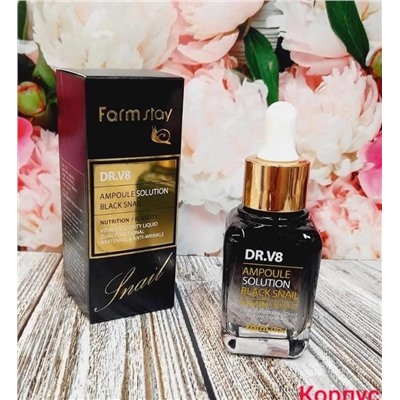 FARMSTAY DR-V8 Ampoule Solution Black Snail ВОССТАНАВЛИВАЮЩАЯ АМПУЛЬНАЯ СЫВОРОТКА С МУЦИНОМ ЧЁРНОЙ УЛИТКИ