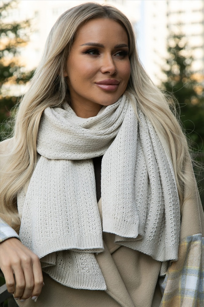 Стильный аксессуар, способный вдохнуть новую жизнь в ваш осенне-зимний гардероб. Вязаный материал обеспечит комфорт и уют в прохладную погоду, а нежный молочный оттенок гармонично впишется практически в любой образ. Палантин можно носить на шее, на голове или как накидку. Создавайте уникальные комбинации, экспериментируйте с образом и наслаждайтесь теплом и стилем!