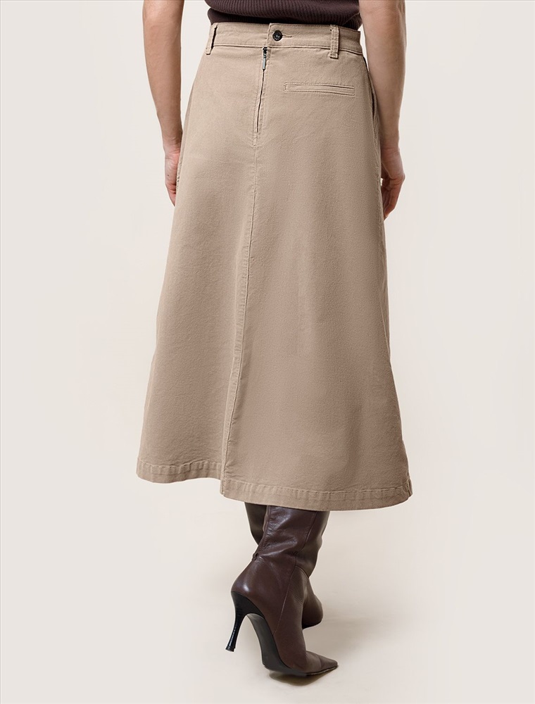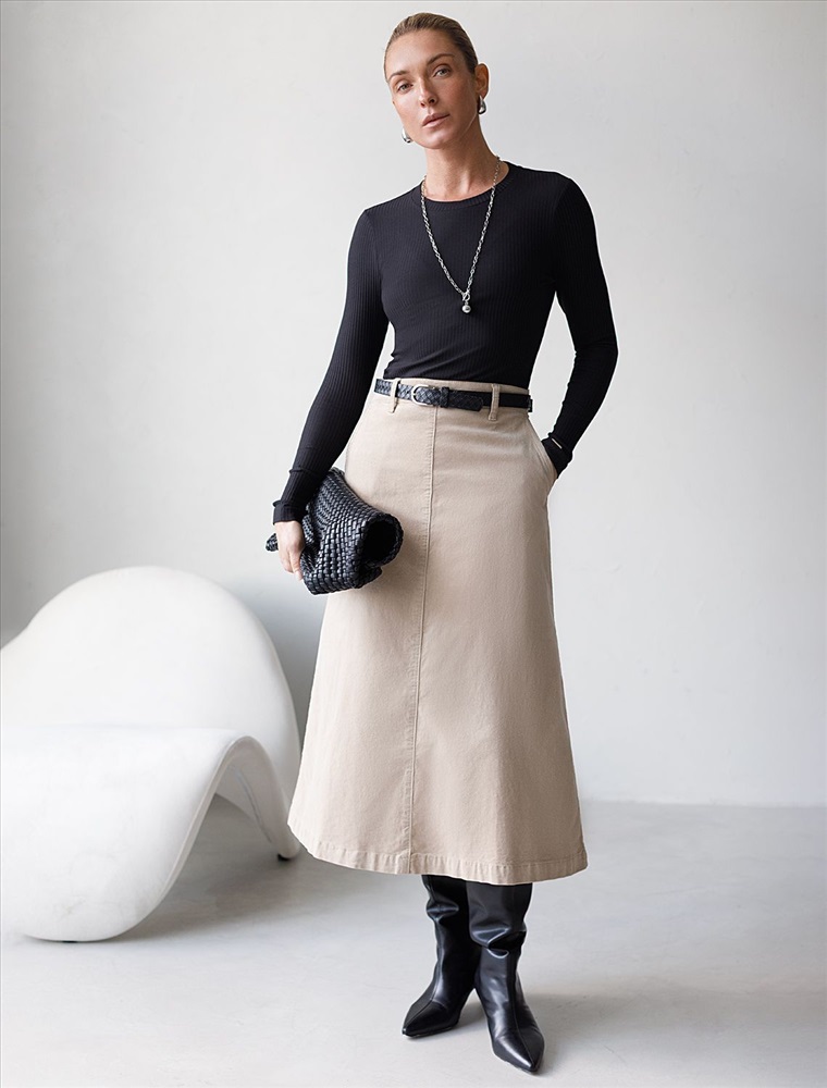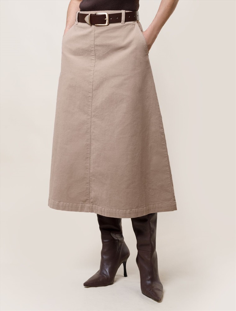 Размер товара на первом фото: 42 Юбка-миди трапециевидного силуэта выполнена из мягкого хлопкового микро-вельвета с добавлением эластана. Изделие комфортно садится по фигуре и не сковывает движения. Модель дополнена высококачественной фурнитурой с фирменным логотипом бренда. Хорошо комбинируется с вязаным трикотажем, блузками и денимом.Также прекрасно станет альтернативой деловым низам в нестрогом офисном дресс-коде.