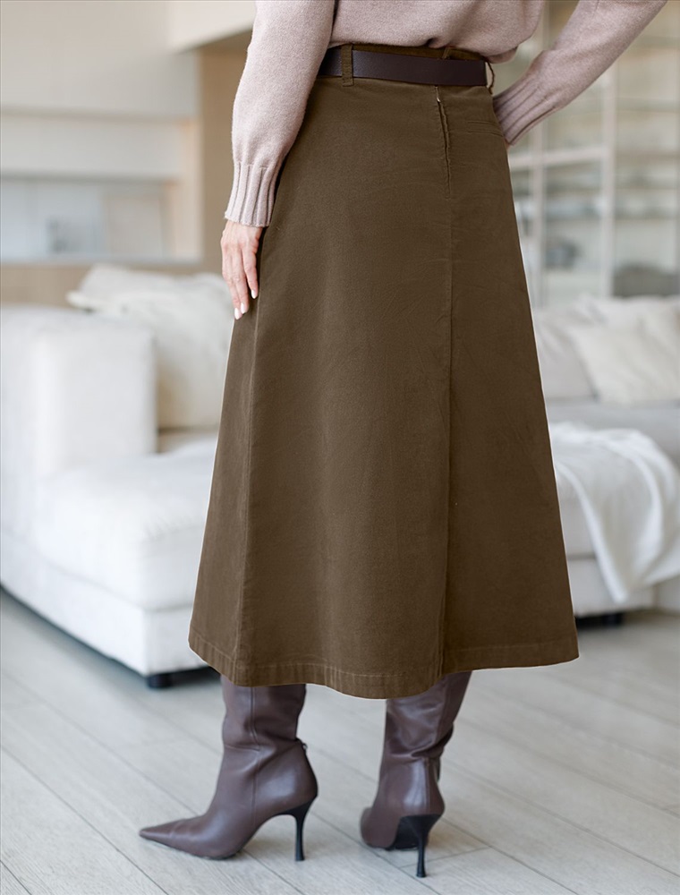 Размер товара на первом фото: 42 Юбка-миди трапециевидного силуэта выполнена из мягкого хлопкового микро-вельвета с добавлением эластана. Изделие комфортно садится по фигуре и не сковывает движения. Модель дополнена высококачественной фурнитурой с фирменным логотипом бренда. Хорошо комбинируется с вязаным трикотажем, блузками и денимом.Также прекрасно станет альтернативой деловым низам в нестрогом офисном дресс-коде.