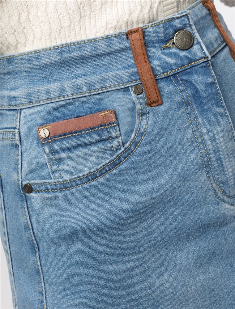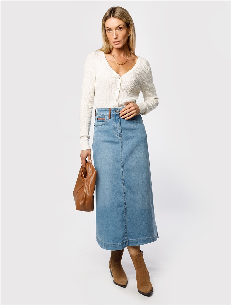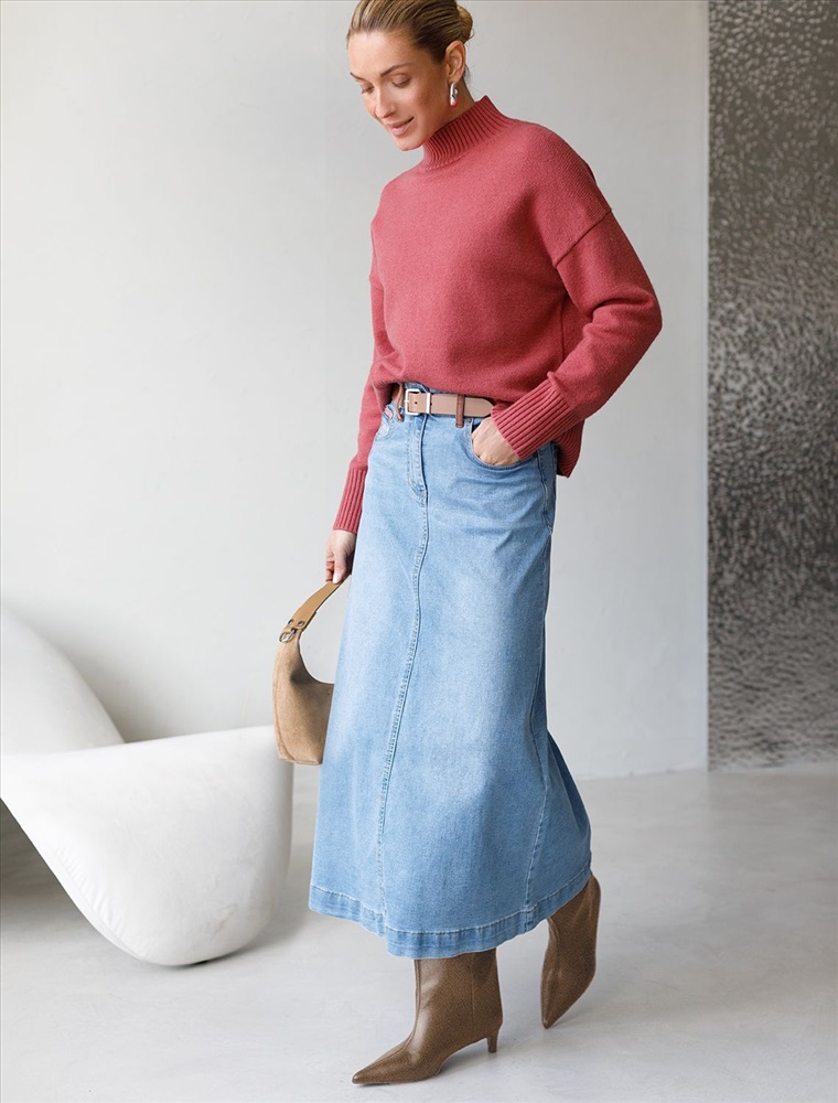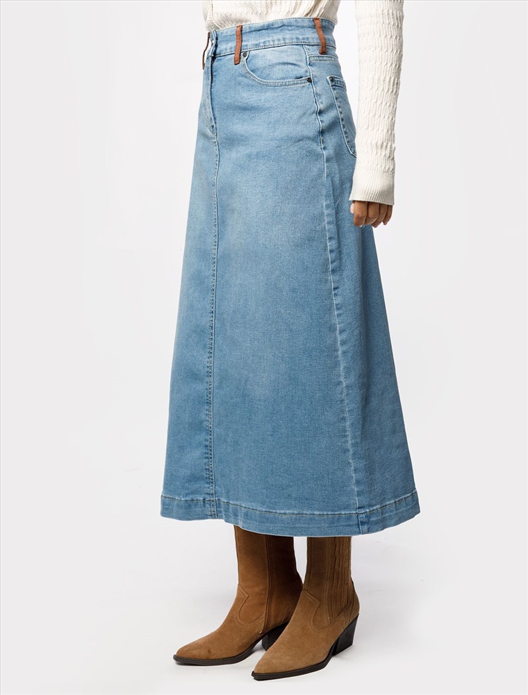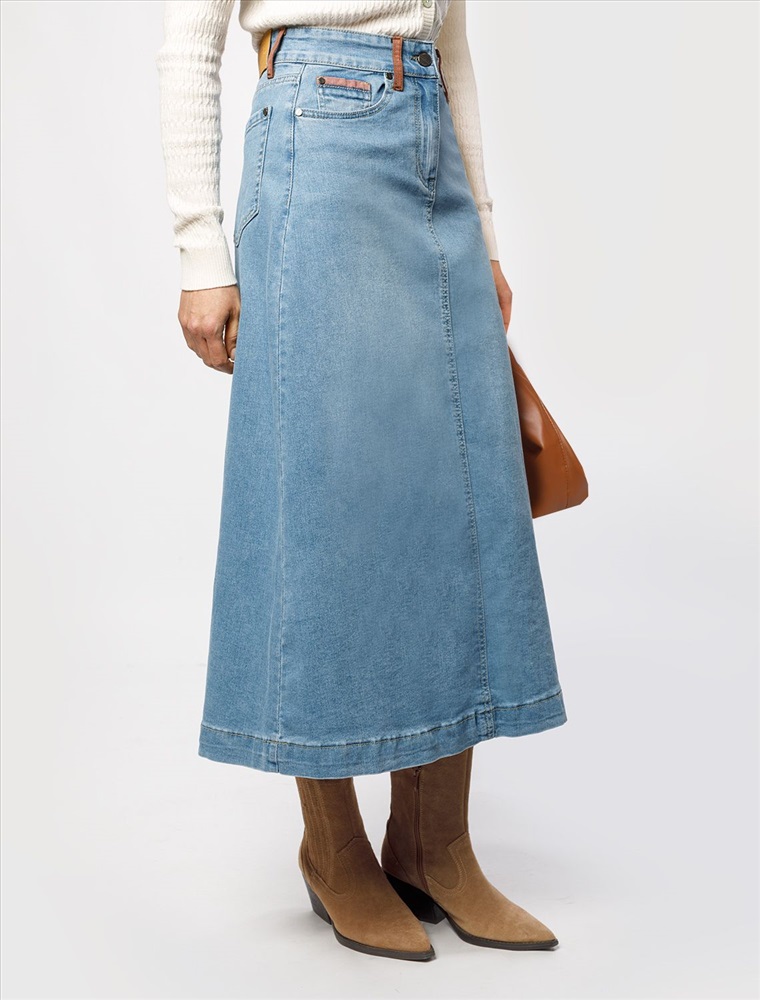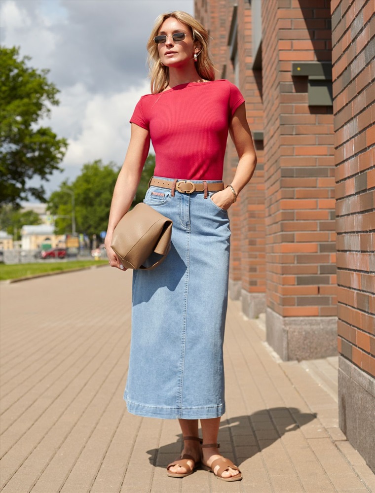 Плотность: 12.9 OZ Параметры модели на первом фото: Рост 172, бюст 88, талия 64, бедра 88 Юбка А-силуэта выполнена из эластичного денима. Модель средней посадки с декоративными потёртостями и пятью карманами как у джинс. Подходит для любого типа фигуры. Сочетается с открытой обувью, кроссовками и сапогами. Изделие дополнено фирменным патчем. Комментарии к товару