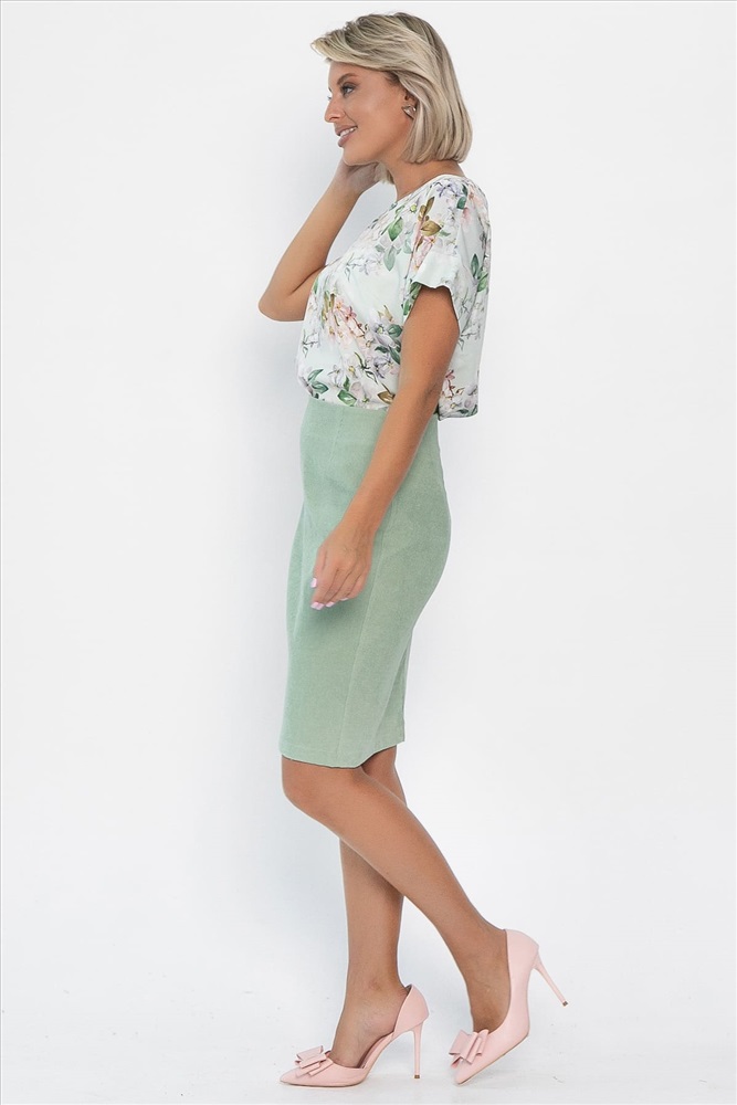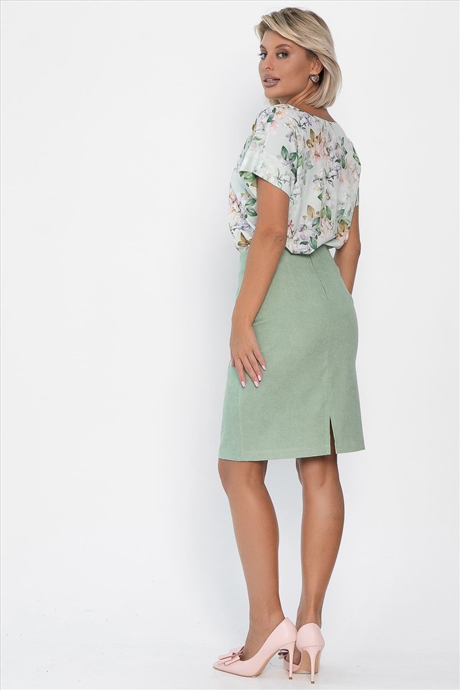 Элегантная прямая юбка, изготовленная из ткани «вельвет» в красивом фисташковом цвете, придаст вашему образу изысканный шарм. Сочетание стиля и комфорта делает её идеальным выбором как для офиса, так и для повседневных обстоятельств. Разрез на юбке сзади гарантирует комфорт и свободу движений. Потайная молния облегчает процесс надевания и снятия. Вы можете создать множество потрясающих образов. Юбку можно носить как с классическими туфлями для строгого офисного стиля, а можно и с кроссовками для более непринуждённого и современного образа.
