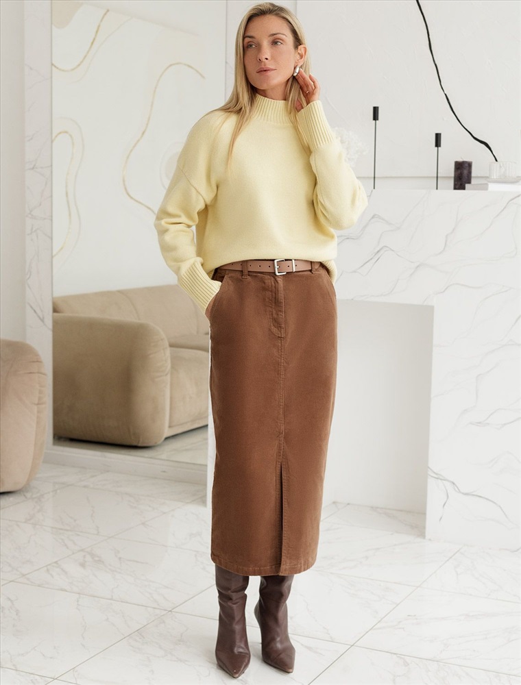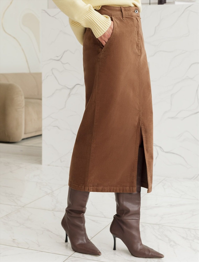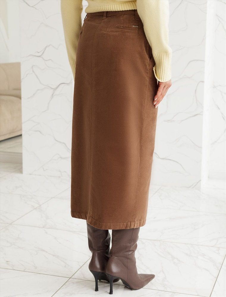 Размер товара на первом фото: 42 Юбка прямого кроя с выполнена из мягкого хлопкового микро-вельвета с добавлением эластана. Модель дополнена высоким разрезом спереди. Изделие комфортно садится по фигуре и не сковывает движения. Хорошо комбинируется с вязаным трикотажем, блузками и денимом. Также прекрасно станет альтернативой деловым низам в нестрогом офисном дресс-коде.
