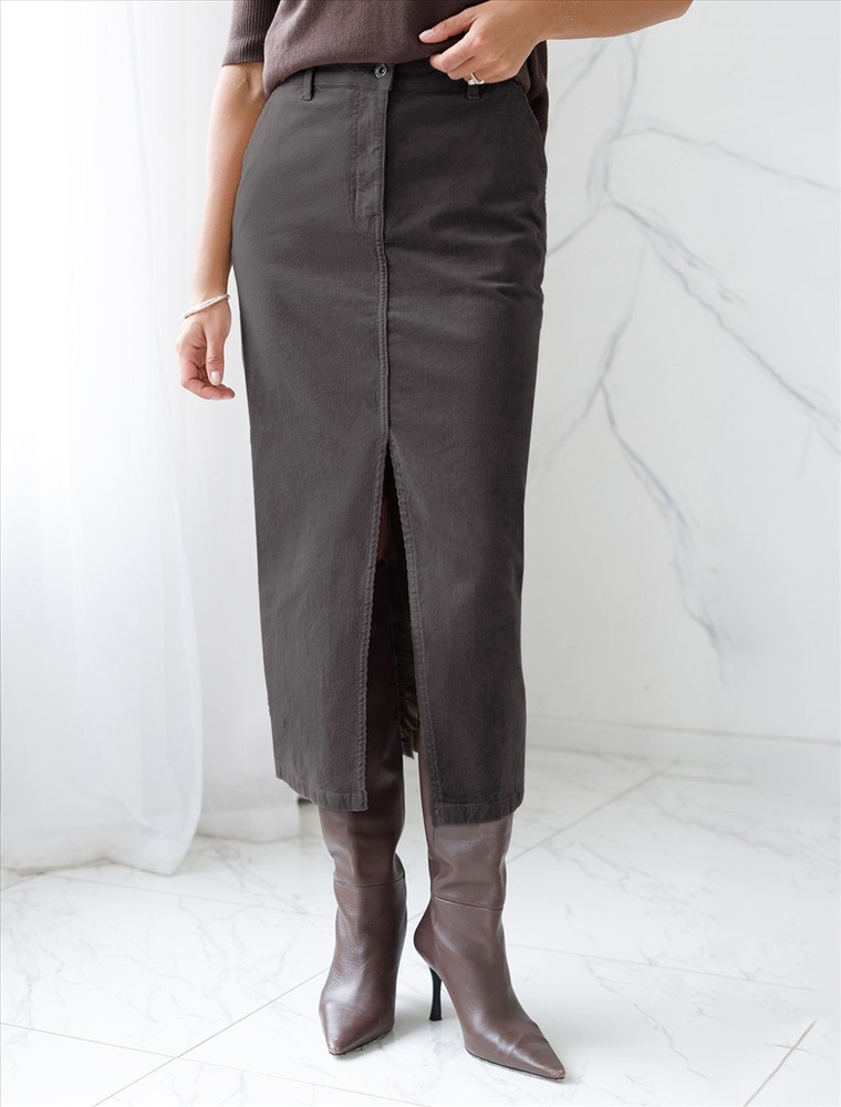 Размер товара на первом фото: 42 Юбка прямого кроя с выполнена из мягкого хлопкового микро-вельвета с добавлением эластана. Модель дополнена высоким разрезом спереди. Изделие комфортно садится по фигуре и не сковывает движения. Хорошо комбинируется с вязаным трикотажем, блузками и денимом. Также прекрасно станет альтернативой деловым низам в нестрогом офисном дресс-коде.