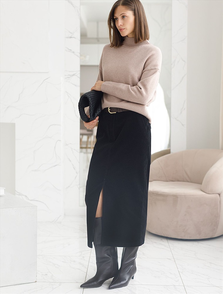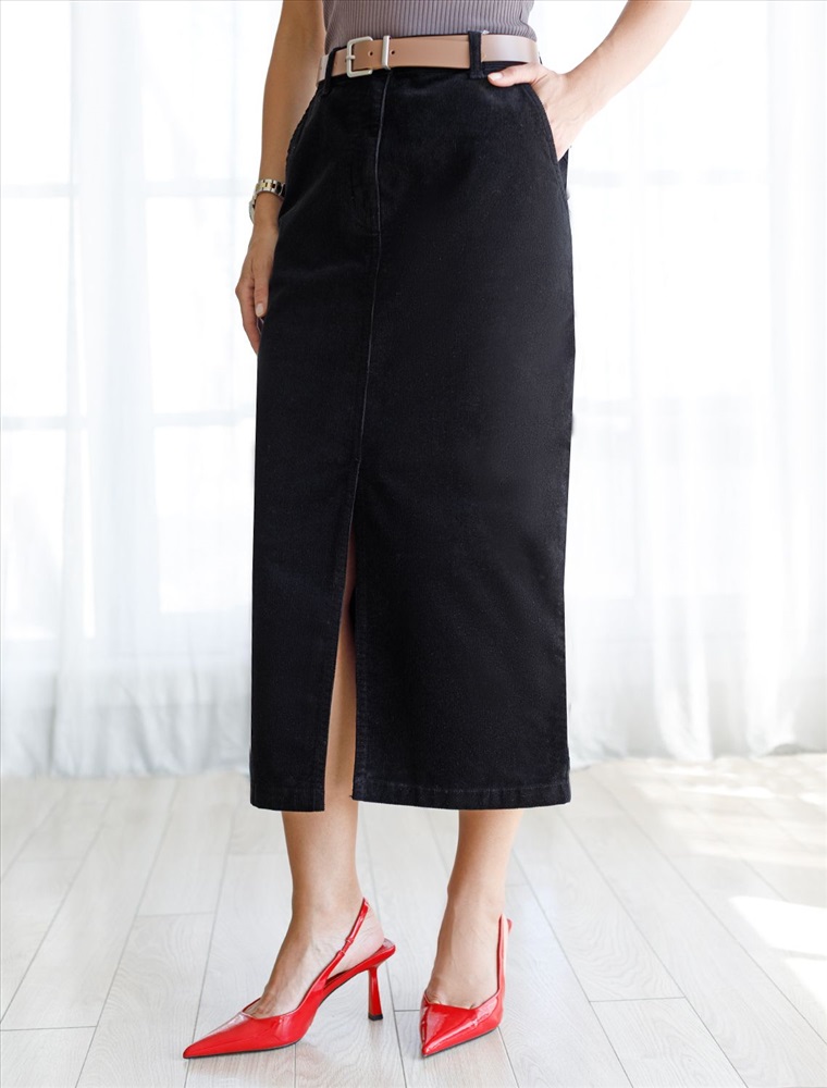 Плотность: 310 Г/м2 Размер товара на первом фото: 42 Юбка прямого кроя с выполнена из мягкого хлопкового микро-вельвета с добавлением эластана. Модель дополнена высоким разрезом спереди. Изделие комфортно садится по фигуре и не сковывает движения. Хорошо комбинируется с вязаным трикотажем, блузками и денимом. Также прекрасно станет альтернативой деловым низам в нестрогом офисном дресс-коде. Комментарии к товару