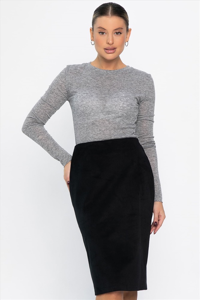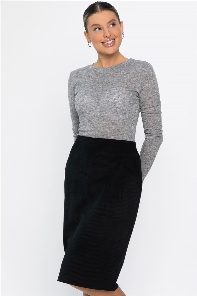 Прямая вельветовая юбка — идеальный выбор для любого случая. Ее классическая миди-длина гармонично сочетает элегантность и современность. Модель подходит как для повседневных, так и для офисных образов, обеспечивая комфорт и стиль.