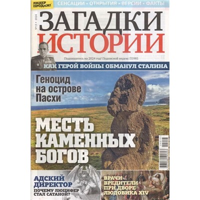 Раздел: ЖУРНАЛЫ Жанр: Тайны. эзотерика. мистика. магия / История. политика. экономика Издательство: ИД Пресс-курьер Серия: Загадки истории Тип обложки: Мягкая обложка Формат издания: 205x290 мм Артикул: j460703859069324013 Количество страниц: 40 Бумага: Газетная Журнал «Загадки истории» - все самое интересное из истории человечества. Исторические расследования, рассказы об исчезнувших цивилизациях, военные тайны, гениальные изобретения, катастрофы, истории любви, удивительные повороты истории, сенсации, открытия, версии и факты. Комментарии к товару
