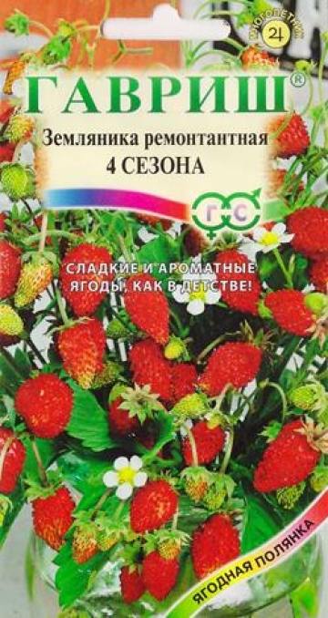 Высокоурожайный сорт ремонтантной земляники с непрерывным плодоношением с июля до осени. Быстро развивается и формирует кустик с большим количеством соцветий. Ягоды среднего размера, красные, медово-сладкие и ароматные. Сорт отличается высокой устойчивостью к неблагоприятным условиям выращивания, основным болезням и вредителям земляники. Благодаря обильному и непрерывному цветению, может выращиватся, как горшечная декоративная культура. Посев земляники производят в марте-апреле. Семена смешивают с песком и равномерно распределяют по увлажненной ровной поверхности. Всходы появляются в течение 30 дней. В фазе 1-2 настоящих листьев саженцы пикируют в горшочки. После появления 6 настоящих листьев высаживают в грунт с расстоянием между рядами 25-30 см, между растениями 15-20 см. Сбор урожая начинают с июля. Фасовка 0,03г Комментарии к товару