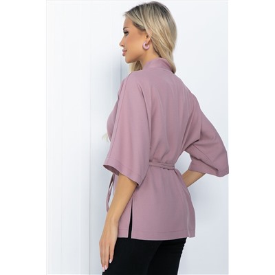 Жакет на запах в стильном розовом оттенке, рукав ¾ , по боковому шву маленькие разрезы. По переду пришиты два шнурка в виде поясков, их можно использовать, как декоративные элементы - завязать по отдельности и жакет будет на распах или завязать их на талии. Отлично стилизуется с топами и футболками.