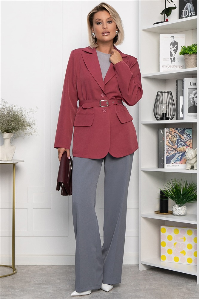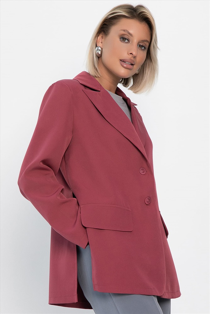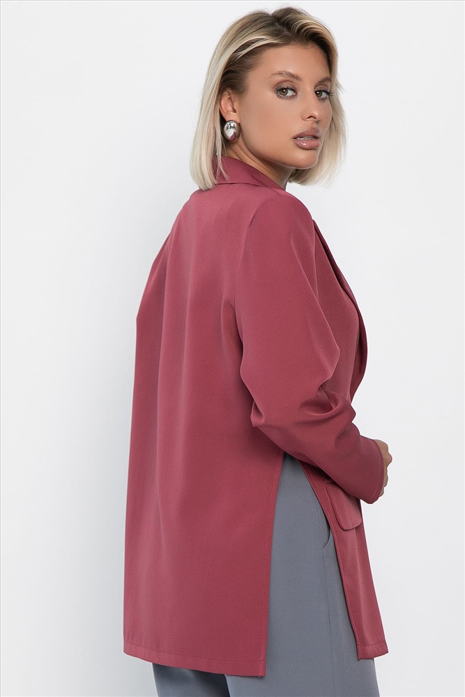 Элегантный пиджак прямого кроя приятного ягодного цвета — идеальное сочетание стиля и комфорта. Выполненный из высококачественных материалов, он обеспечивает отличную посадку и свободу движений. По бокам есть разрезы. Этот пиджак станет ярким акцентом в вашем гардеробе, легко сочетаясь как с классическими, так и с повседневными образами. Добавьте свежести и уверенности в свой стиль с этим универсальным и модным изделием!
