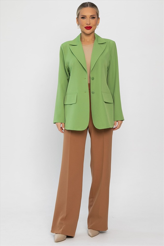 Элегантный пиджак прямого кроя приятного зелёного цвета — идеальное сочетание стиля и комфорта. Выполненный из высококачественных материалов, он обеспечивает отличную посадку и свободу движений. Этот пиджак станет ярким акцентом в вашем гардеробе, легко сочетаясь как с классическими, так и с повседневными образами. Добавьте свежести и уверенности в свой стиль с этим универсальным и модным изделием!