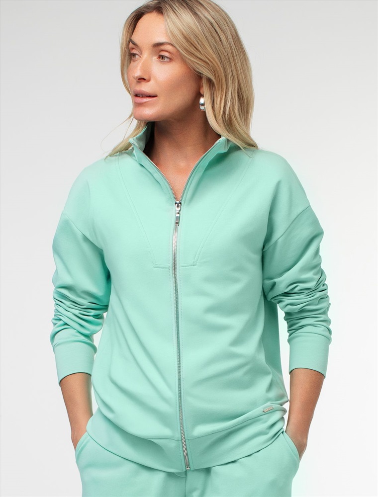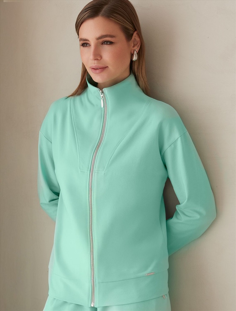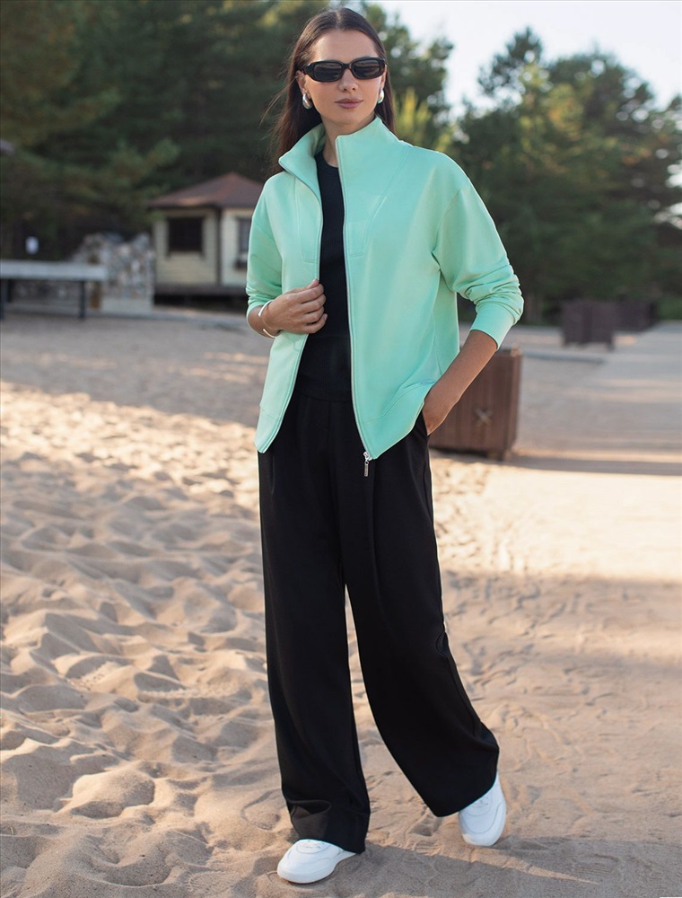 Плотность: 240 Г/м2 Параметры модели на первом фото: Рост 172, бюст 88, талия 64, бедра 88 Жакет выполнен из футера двухнитки с эластаном. Модель без карманов с воротом стойка и застежкой на молнию серебристого цвета. Эластичный материал гарантирует комфорт и формоустойчивость. Сочетается в костюме с брюками D44.138, D44.139 D44.140 и шортами D48.008. Изделие дополнено металлическим логотипом бренда. Комментарии к товару