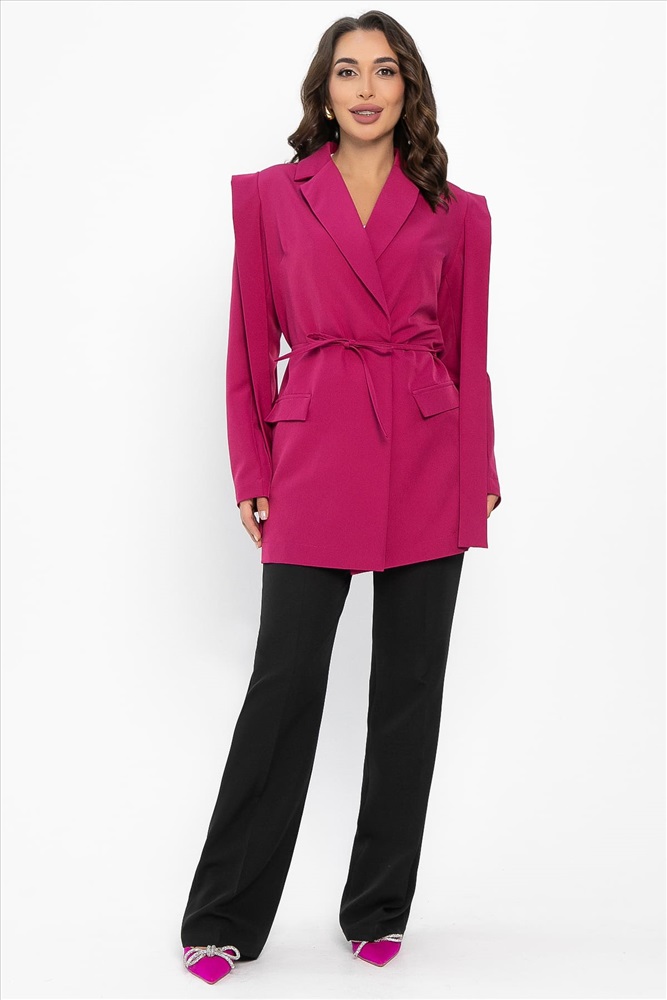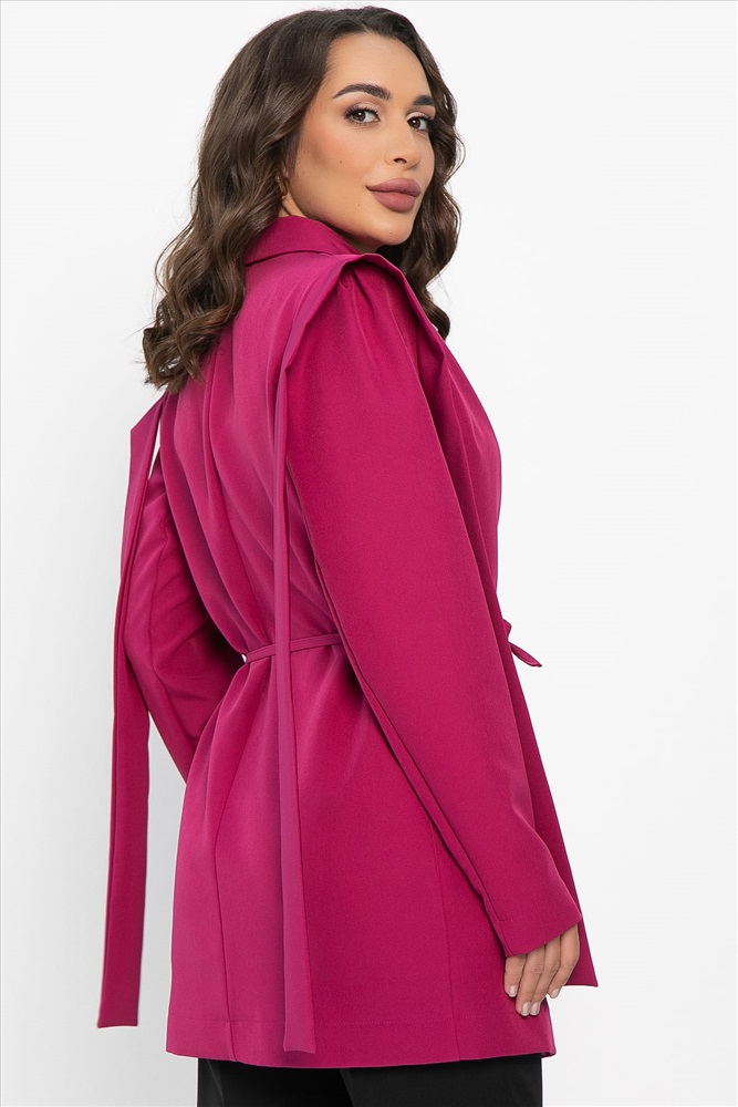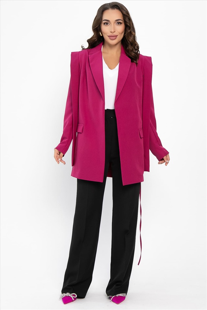 С этим эффектным и модным жакетом вы сможете создать неповторимый образ! Обратите внимание на оригинальные детали — декоративные завязки на плечах, которые придают вашему наряду особую изюминку. Также в модели предусмотрены подплечники. Этот жакет прекрасно дополнит любой образ и станет идеальным выбором для официальных мероприятий, свиданий, вечеринок или повседневной носки. Он позволит вам раскрыть свой стиль и экспериментировать с различными аксессуарами и элементами гардероба.