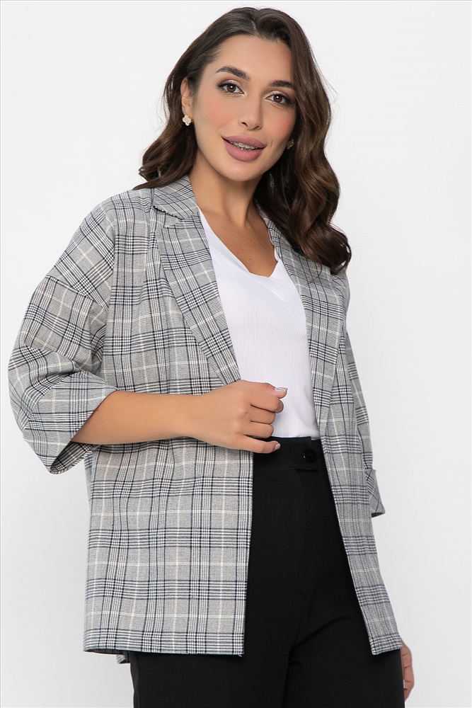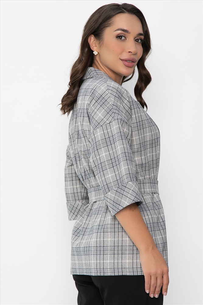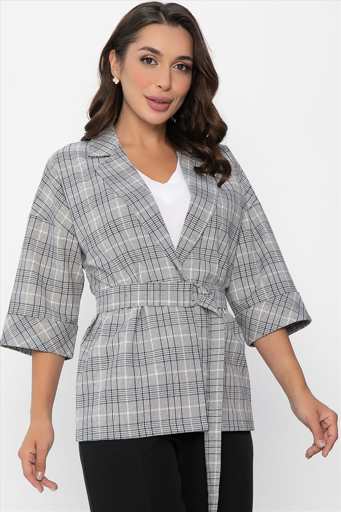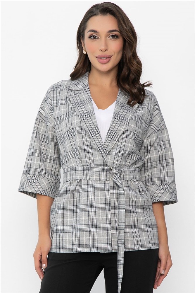 Элегантный жакет из костюмной ткани в клетку — идеальное дополнение как для дневного, так и для вечернего образа. Эта стильная модель выполнена в свободном силуэте с английским воротником, который визуально удлиняет шею, придавая образу утончённость. В комплект входит пояс из основной ткани, что позволяет подчеркнуть талию и добавить изысканности вашему наряду. Подходит для офисных встреч, прогулок и вечерних мероприятий.