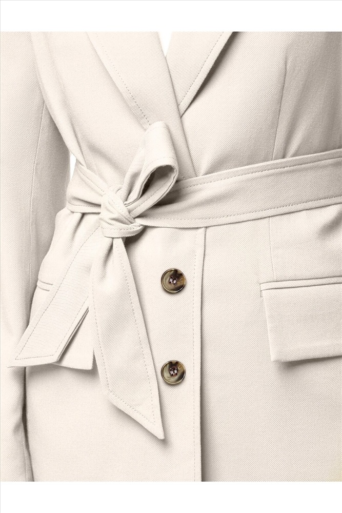 Жакет из летней эластичной поливискозы с фактурой. Подкладка из 100% вискозы обеспечивает комфорт даже в самое теплое время года. Пояс в комплекте поддерживает приталенный силуэт подчеркивая хрупкость и изящность фигуры. Совет стилиста: носите в костюме с брюкми или с джинсами светлых тонов.