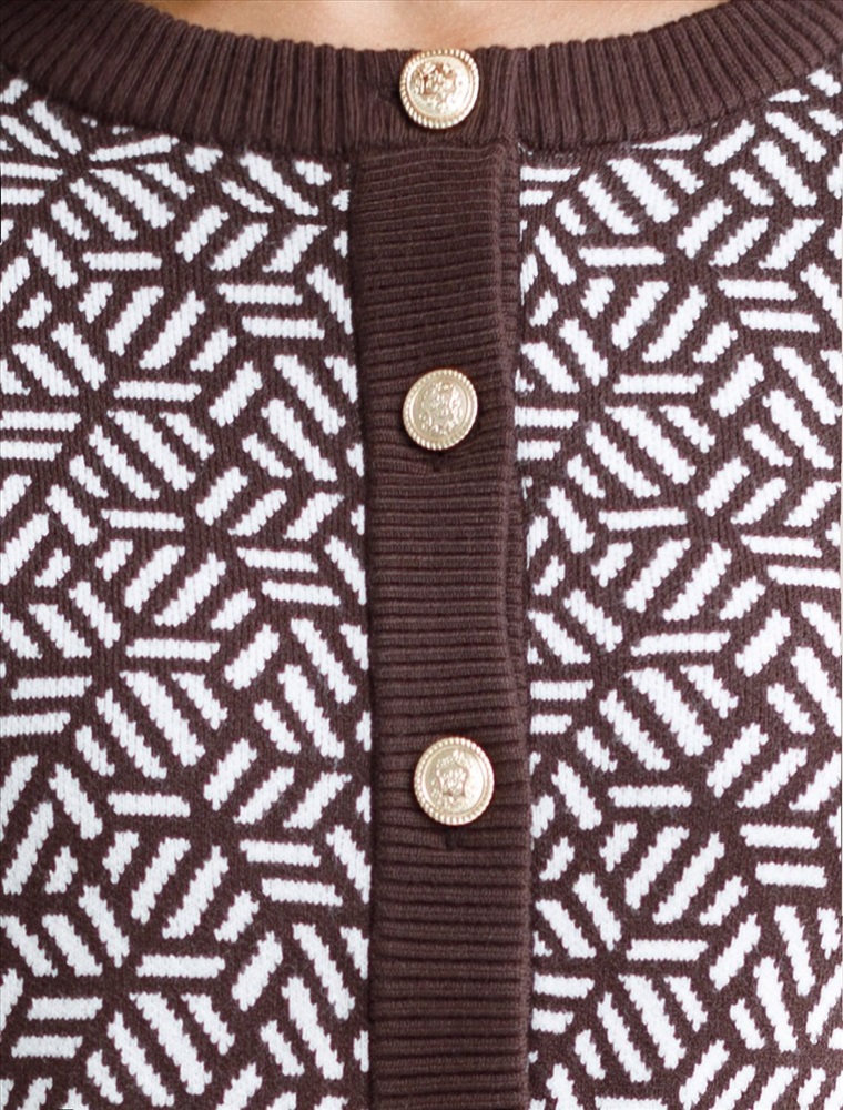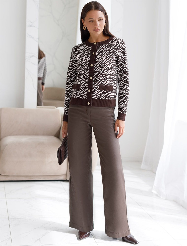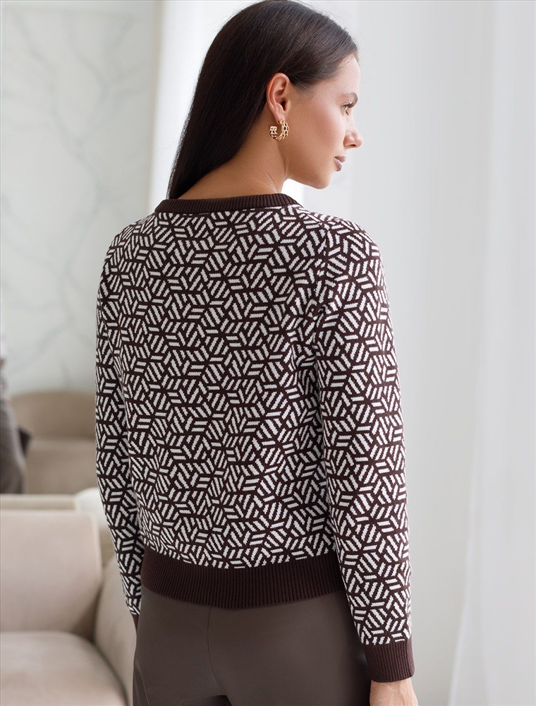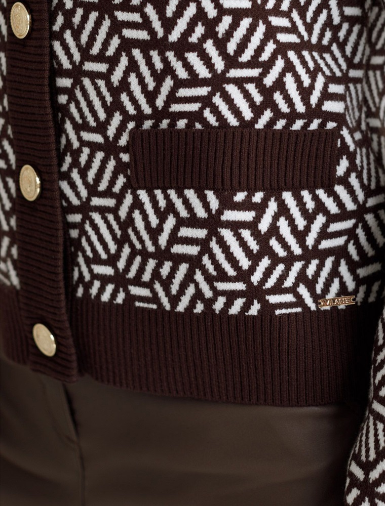 Жакет жаккардовой вязки выполнен из нежной пряжи на основе вискозы с добавлением кашемира. Модель с круглым вырезом и золотистой фурнитурой выглядит дорого и роскошно, приятно ощущается на теле и поддерживает комфортный микроклимат. Совет стилиста: сочетайте с однотонными брюками, юбкой, платьем или джинсами. Можно использовать в комплекте total-look с D39.362 и с платьем D32.110