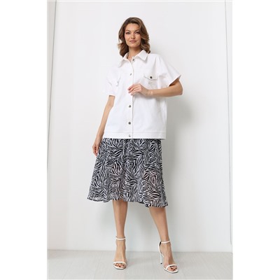 Жилет из джинсы со спущенным плечом. Имитация карманов с клапанами. Отложной ворот и манжет по низу изделия. Пояс в комплекте. Жилет выполнен без подкладки.