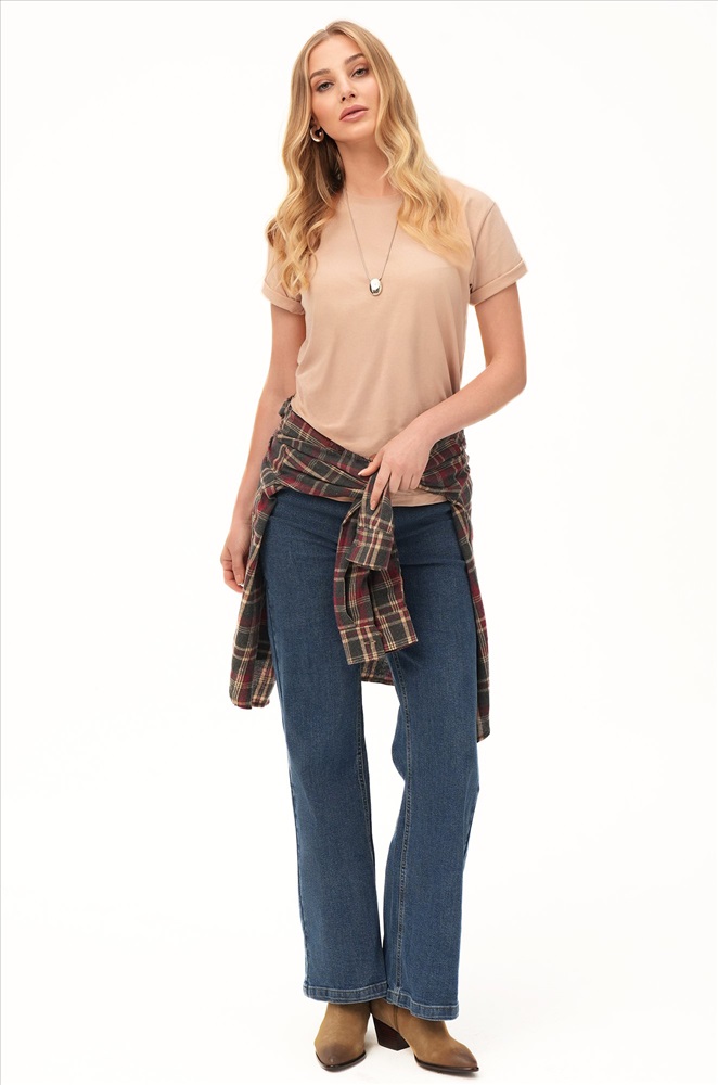 Однотонная женская футболка – тот случай, когда не нужно придумывать, что надеть. Бежевая футболка универсальна. Классическая модель с коротким рукавом выполнена из натурального 100% хлопка. Базовая футболка из дышащего трикотажа кулирная гладь приятна к телу и отличается особым комфортом – идеальна для лета. Благодаря прямому крою трикотажная футболка отлично подходит разным типам фигур, хорошо сидит и не стесняет движений. Хлопковая футболка подойдет для повседневных прогулок. Футболка для женщин составит пару образам в стиле смарт кэжуал (smart casual). Она станет основой повседневных образов. Модель Ирина, рост 167, параметры: 85-61-89 см. На ней футболка 44 размера.