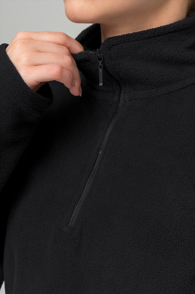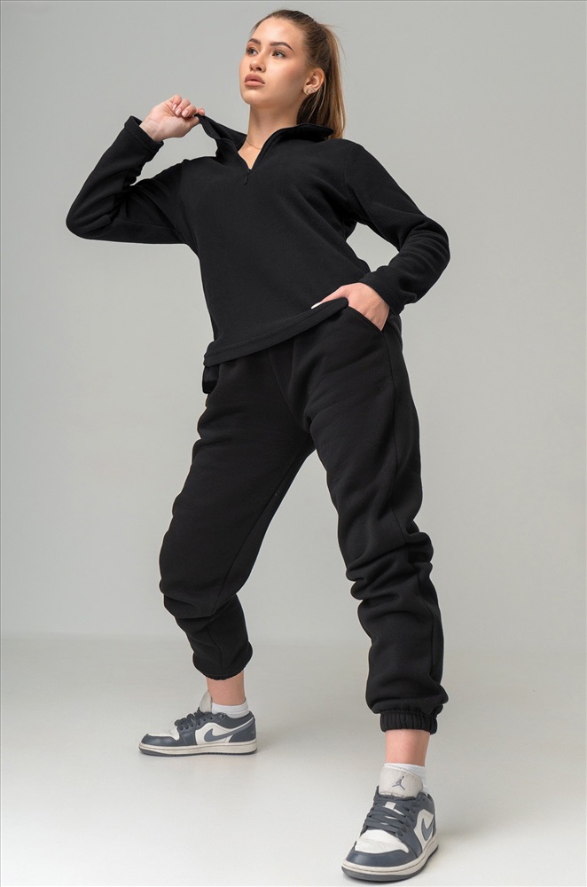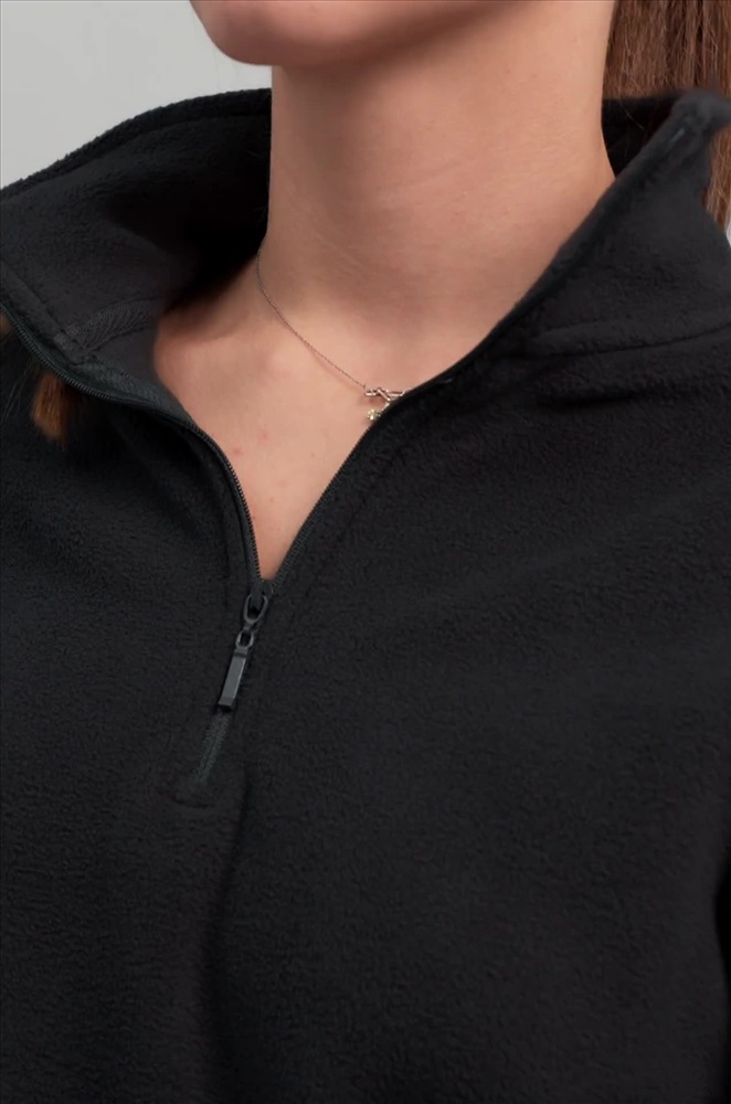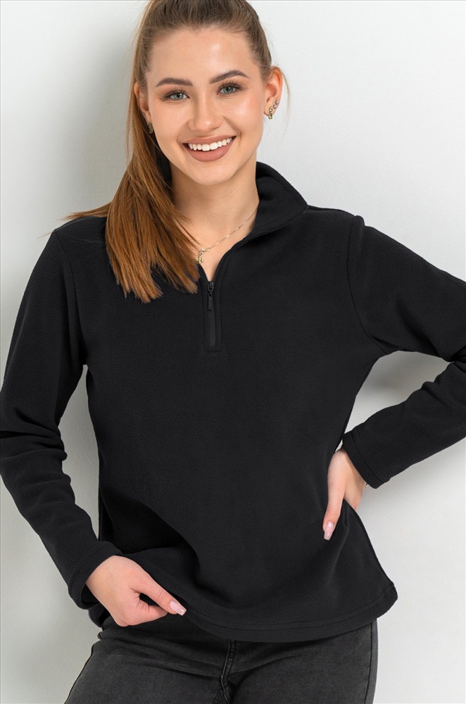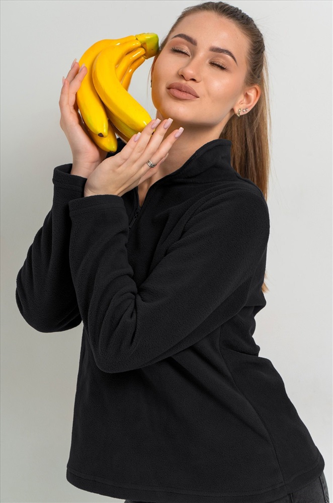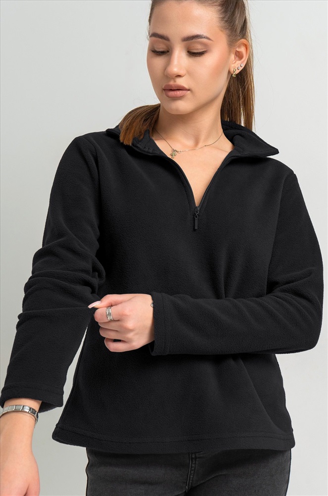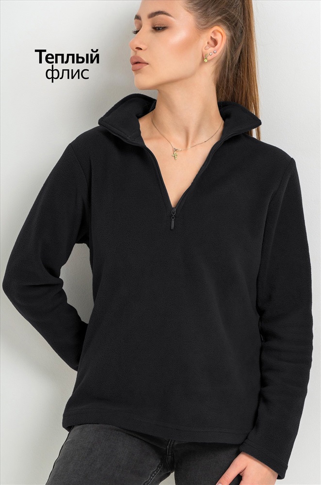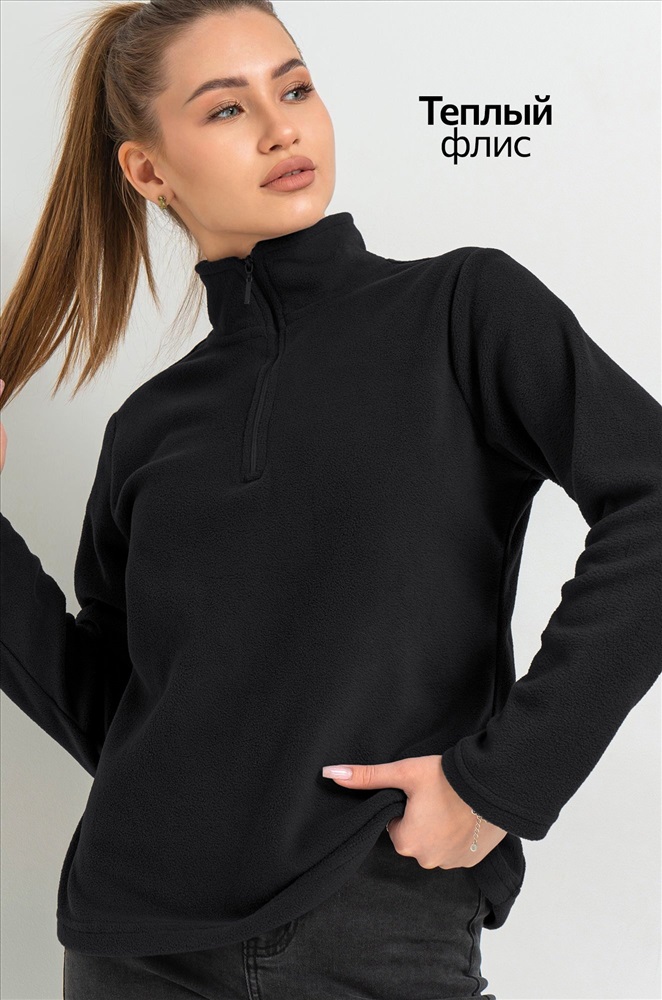 Преимущества: — теплая толстовка с воротником на молнии надежно защищает от ветра и холода; — демисезонная толстовка для женщин выполнена из теплой флисовой ткани; — флисовая толстовка приятна к телу и сохраняет комфорт в прохладную погоду; — мягкая текстура флиса делает прогулки более уютными; — однотонная толстовка легко сочетается с осенними и зимними образами; — прямой крой обеспечивает свободу движений. Черная толстовка универсальна и подходит для прогулок и активного отдыха осенью и зимой.