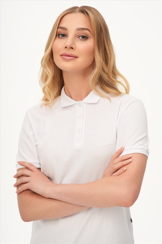 Идеальная база на каждый день найдена! Женская футболка-поло выполнена из натурального 100% хлопка. Строгий отложной воротник и классическая застежка на пуговицы – поло для женщин точно станет идеальной основой для любимого кэжуал-образа!