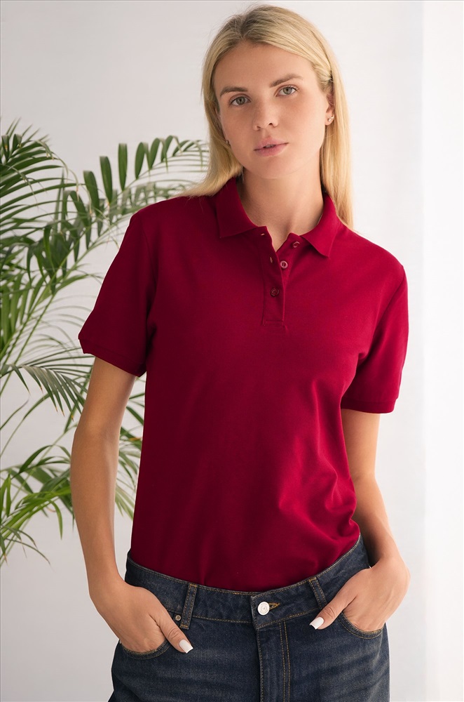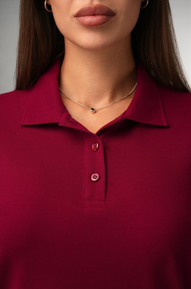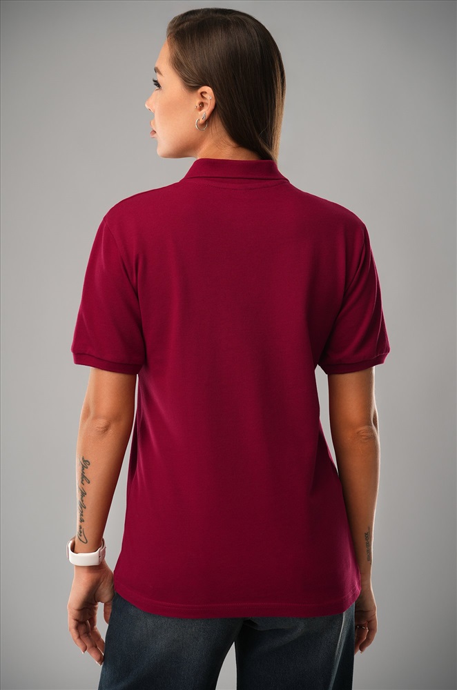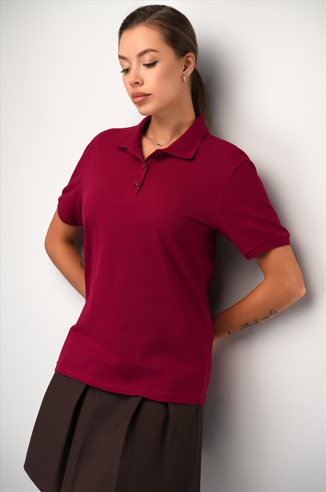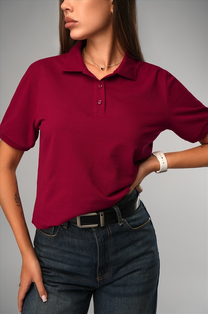 Однотонное бордовое поло — стильная база для повседневных образов.