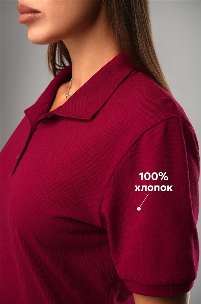 Женская футболка поло выполнена из 100% хлопка: ткань дышит, хорошо держит форму и приятна к телу. Преимущества: — мягкий хлопковый трикотаж лакост (160 г/м2) — комфорт на весь день; — классический отложной воротник и застёжка на пуговицы — строгие акценты для повседневного стиля; — лаконичный крой и короткий рукав; — глубокий темно-красный цвет — универсальное и стильное решение; Тенниска подходит для образов в стиле кэжуал, спорт-шик и минимализм. Модель Валентина, ее рост 177 см, параметры: 85-66-90. На ней размер 44.