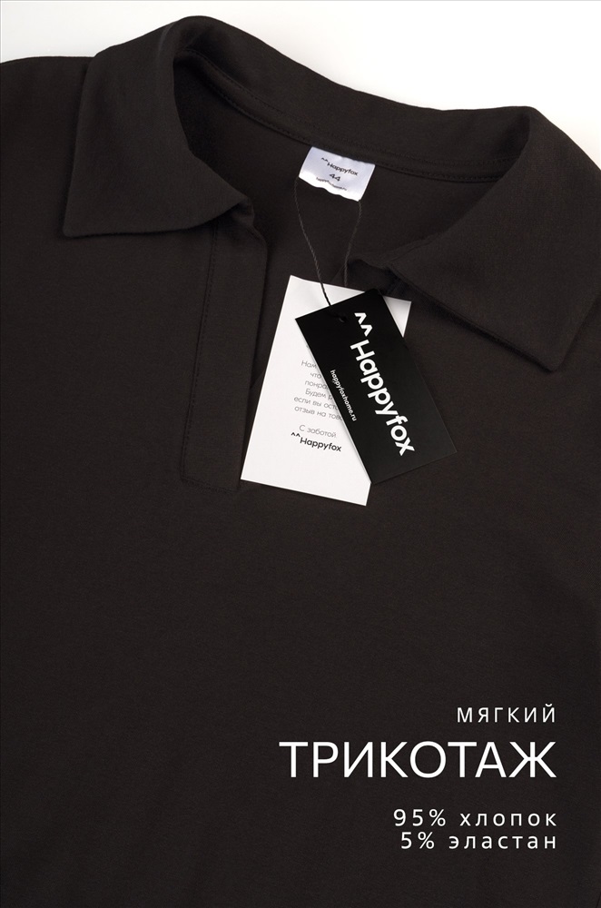 Черная футболка поло из трикотажа кулирная гладь выполнена в лаконичном дизайне: прямой крой, отложной воротник и V-вырез добавляют изящности. Хлопковое поло подойдет для похода в офис, на прогулку и для дома.