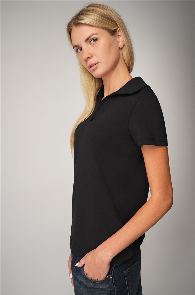Женская футболка-поло из хлопка подарит легкость, комфорт и аккуратный внешний вид. Однотонная базовая тенниска в спортивном стиле станет твоим спутником на каждый день.